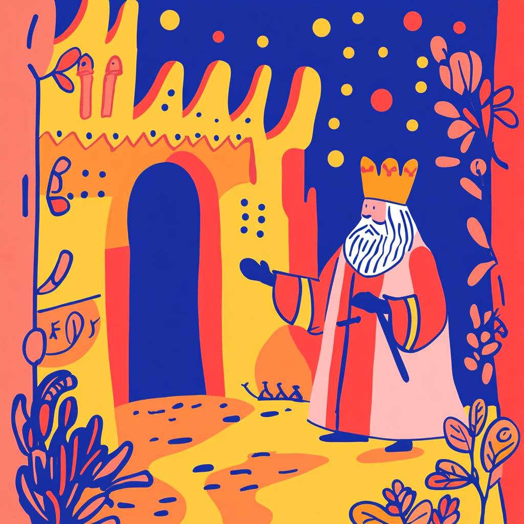 Der Comic zeigt eine Szene aus einem Märchen über einen dummen König.