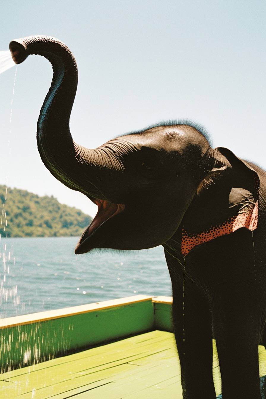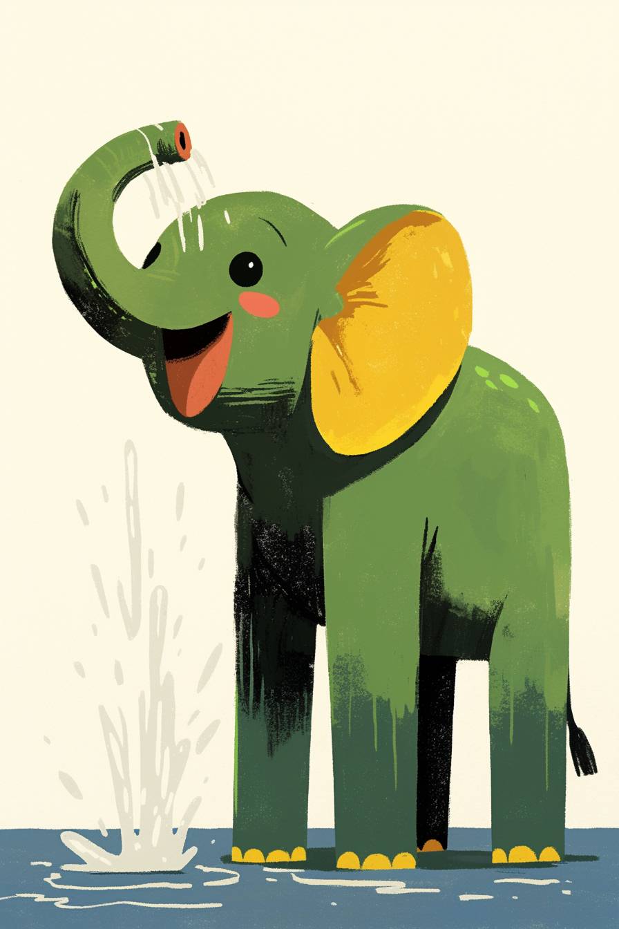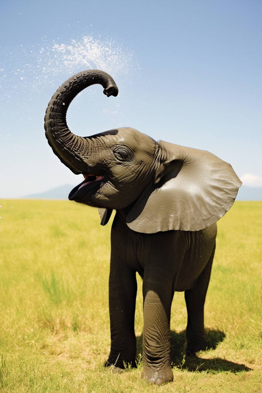 Ein Baby-Elefant spritzt Wasser mit seinem Rüssel