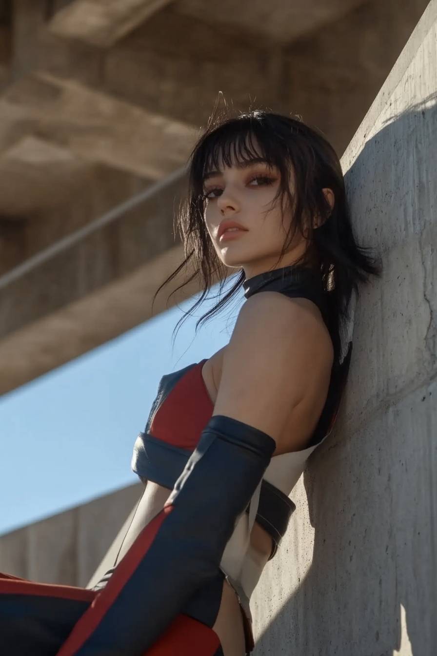 a Leica camera, an attractive woman wearing futuristic sportswear, outdoor military training facility, brutalist concrete architecture, bright sunlight, ethereal colors, imperfect analog film aesthetics, chromatic light leaks. --sref 2437996545 --ar 2:3 --v 6.1