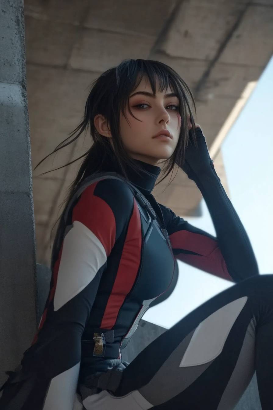 eine Leica-Kamera, eine attraktive Frau in futuristischer Sportbekleidung, eine militärische Ausbildungseinrichtung im Freien, brutalistische Betonstrukturen, helles Sonnenlicht, ätherische Farben, unvollkommene Ästhetik analoger Filme, chromatische Lichtundichtigkeiten.