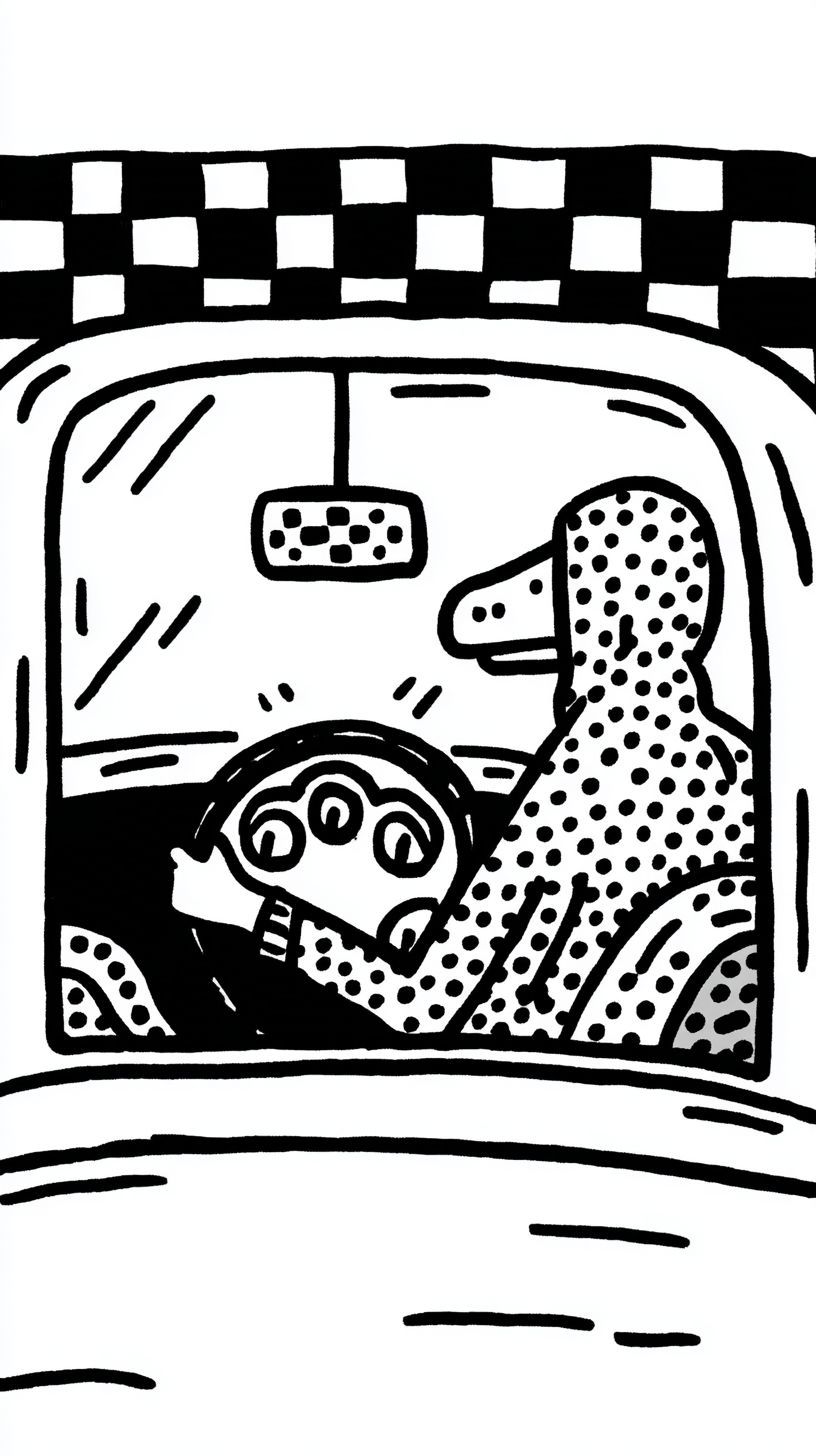 Cute vintage cartoon mascot character Retro car dashboard hula woman, in 1950s screen print . Extremely simplified shapes, chibi-like proportions, thick outline, no facial detail beyond dots and curve lines, one-color ink design. In the style of 1950s comic book covers. Perfect for retro T-shirt print. Off-white background --chaos 40 --ar 9:16 --raw --profile vg7y6ad --stylize 50 --v 7.0