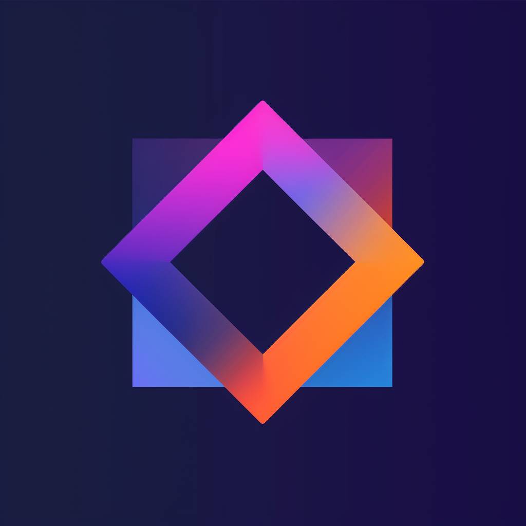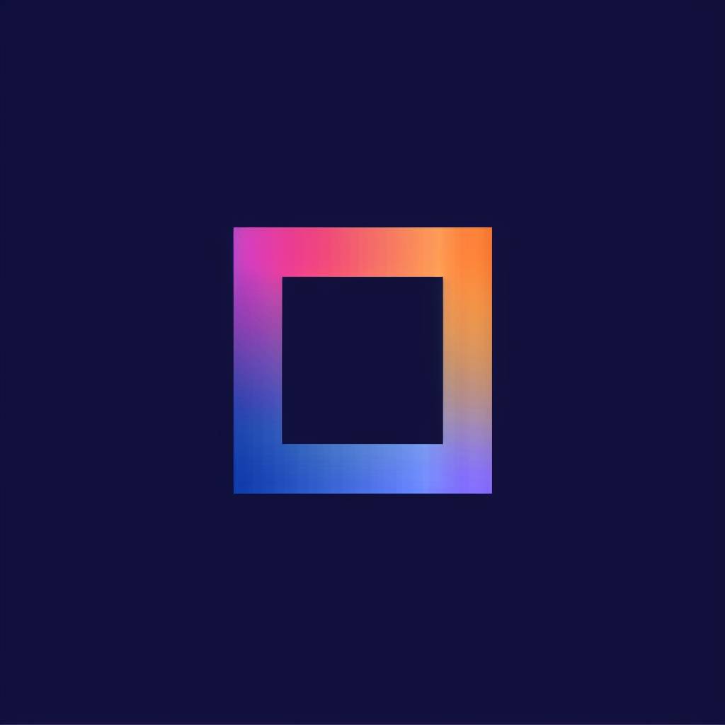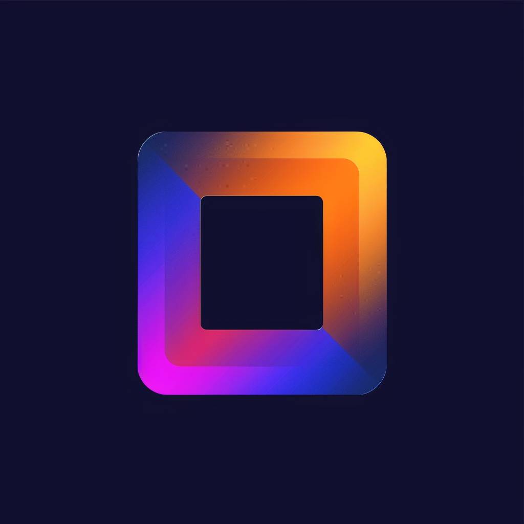 Ein einfaches flaches Vektorlgo eines Quadrats in blauem, lila und orangefarbenem Farbverlauf, entworfen von Ivan Chermayeff.