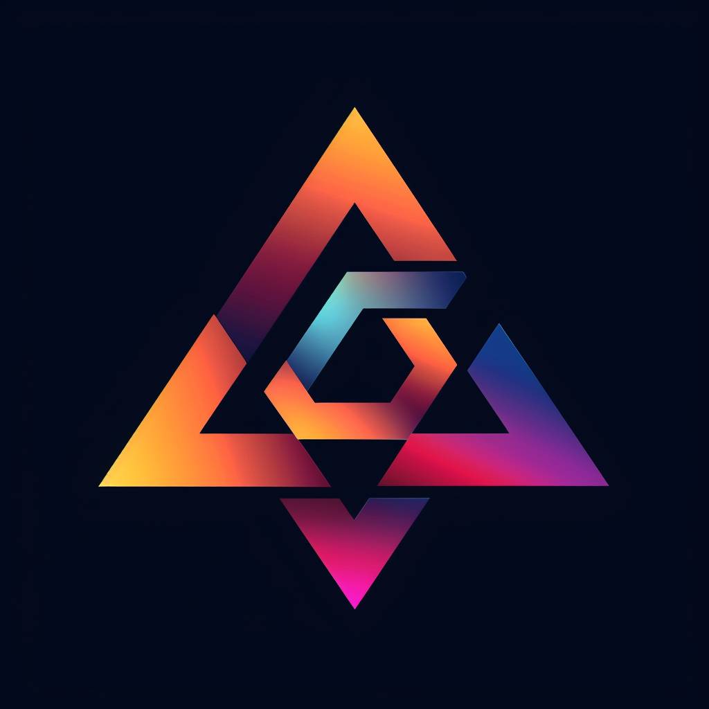 Hochwertiges flaches minimalistisches Logo mit Farbverlauf-Dreiecken, geeignet für 4K.