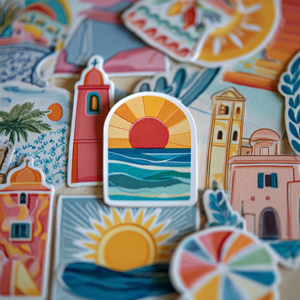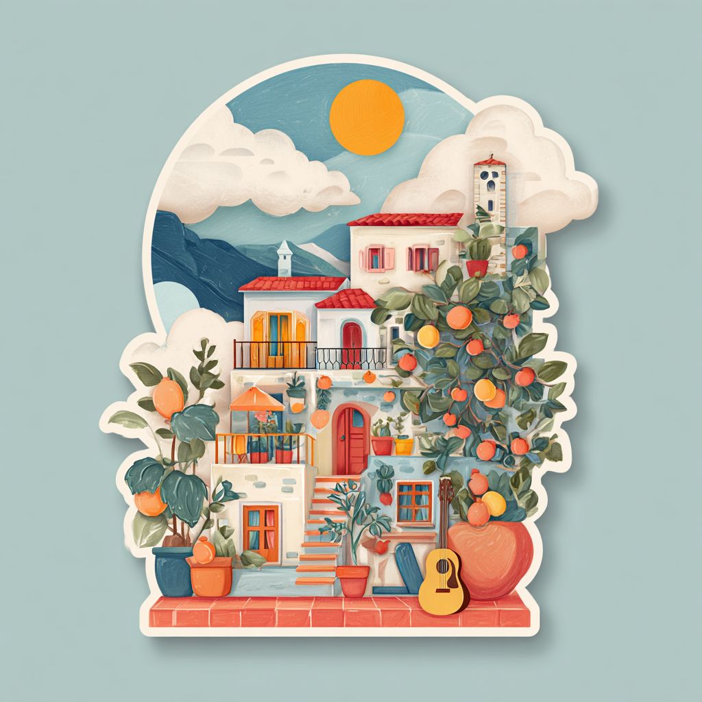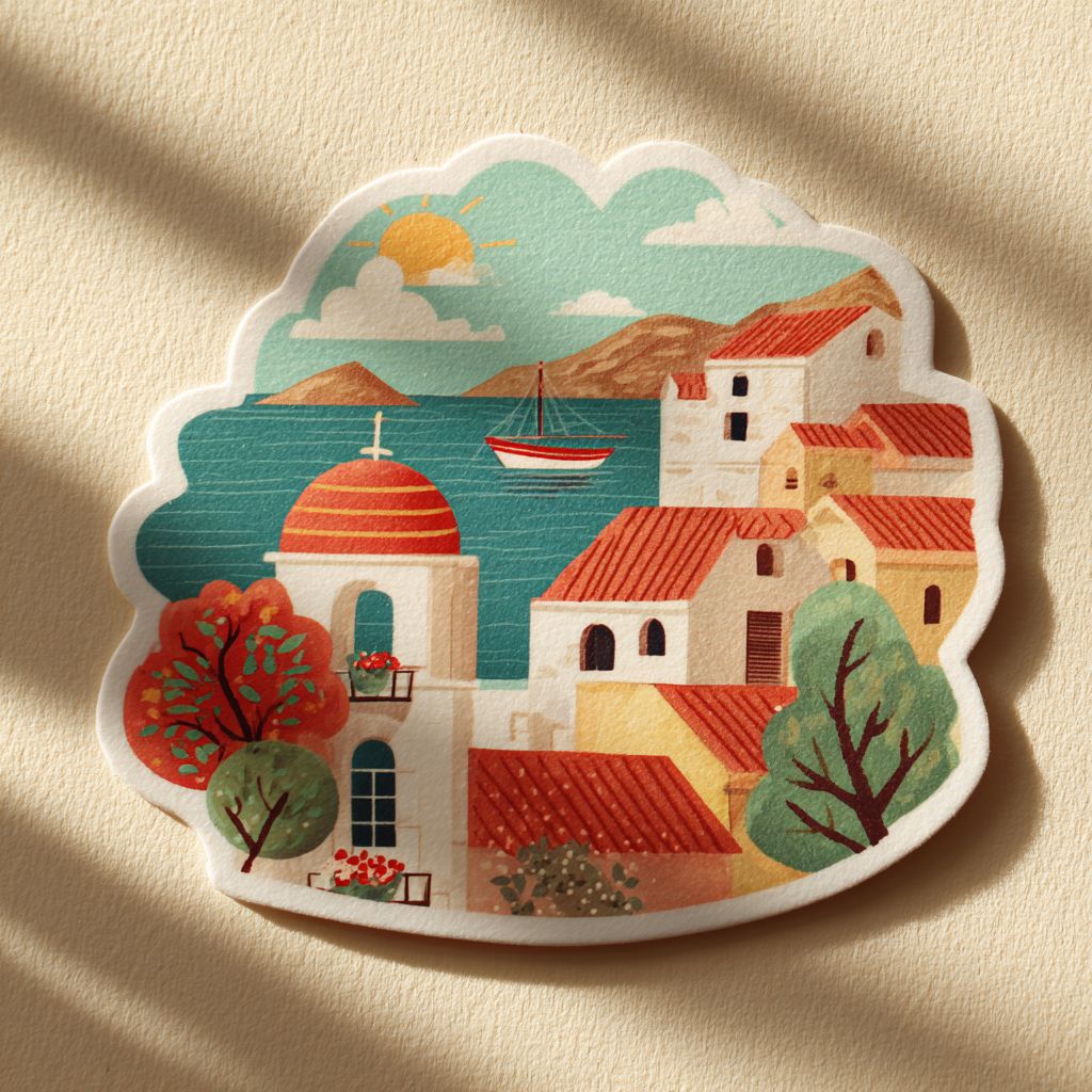Ein Urlaubsaufkleber im Stil von Marta Abad Blay mit Griechenland