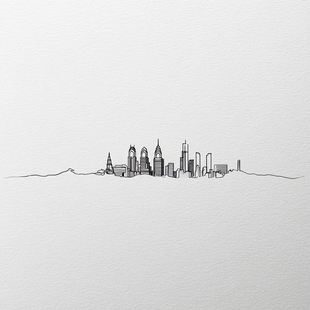 Ultra-minimalistische Zeichnung der Philadelphia Skyline mit subtil integriertem Adler