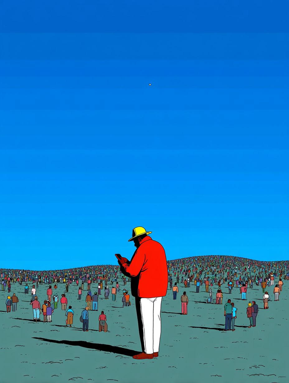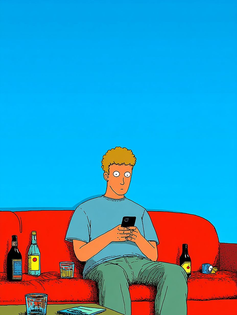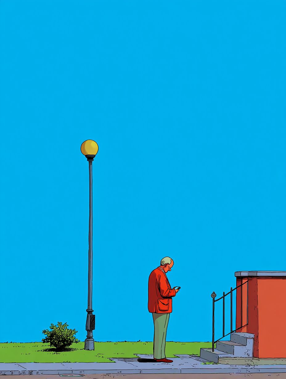 Illustration,One day you might notice you’ve been staring at your phone for hours,simonbailly style --ar 3:4 --raw --sref <https://s.mj.run/w81czztBCIM> <https://s.mj.run/hW3hDziUoXk> <https://s.mj.run/ZDe4BYnt-Y0> <https://s.mj.run/QSXlOPCTF6Q>