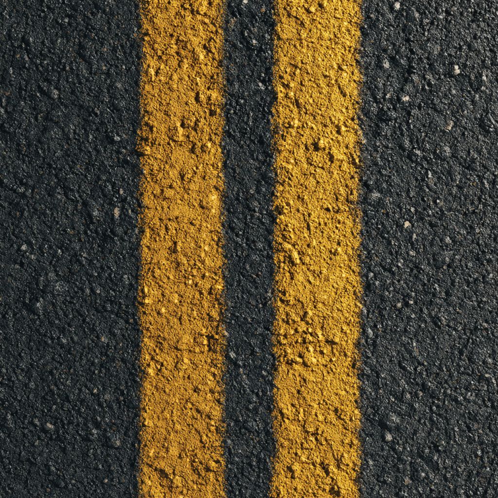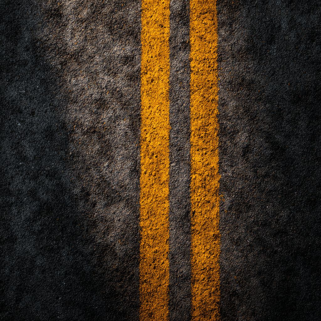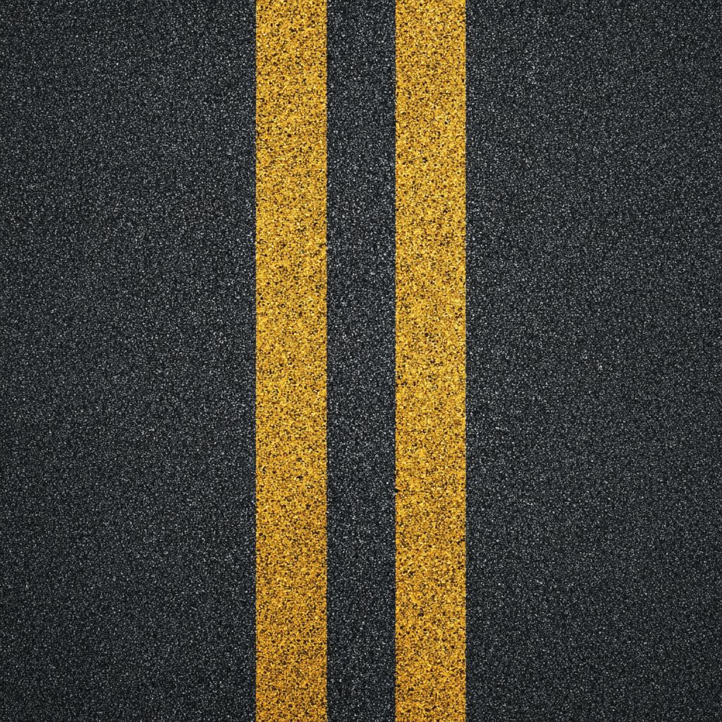 a close-up of asphalt with yellow lines, textured background, top view, high resolution, no blur effect, dark gray and light brown tones, minimalist style, flat design, simple composition, high contrast, and clear details. --ar 1:1 --v 7.0