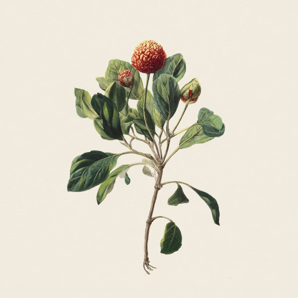 Dies ist eine botanische Illustration, die die Pflanze und ihre Pflegeinformationen zeigt