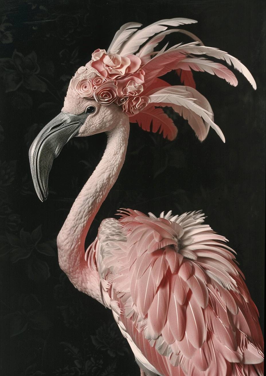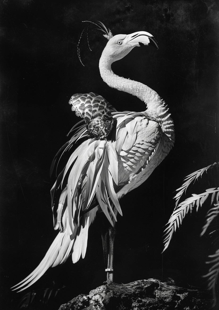 Surrealistische Flamingo-Couture, entworfen von Schiaparelli, fotografiert von Man Ray in den 1930er Jahren.