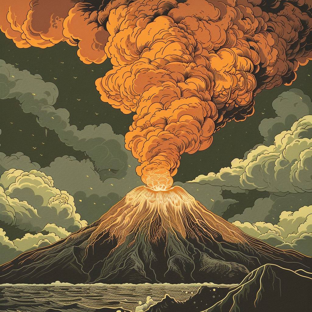 Eine Zeichnung eines Vulkans