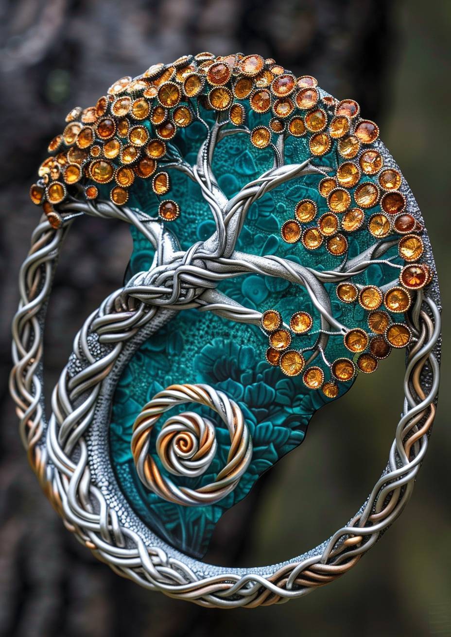 elaborate Viking knotwork, silver, copper, teal, intricate detail, Fibonacci spiral tree of life, tenebrism, glowing radiant colours --ar 5:7 --stylize 250 --v 6.0