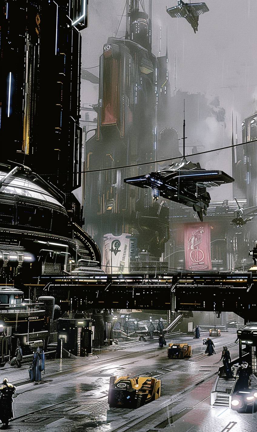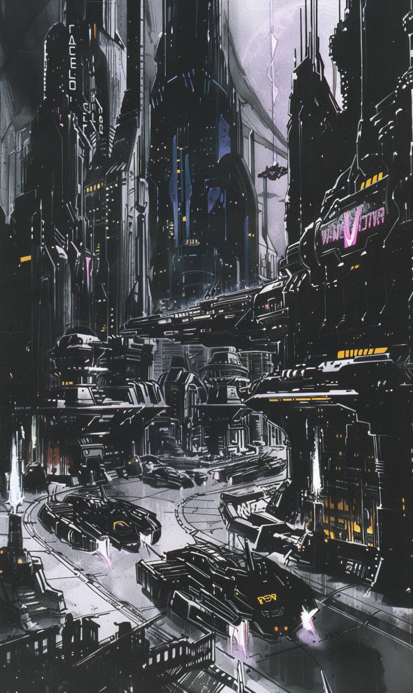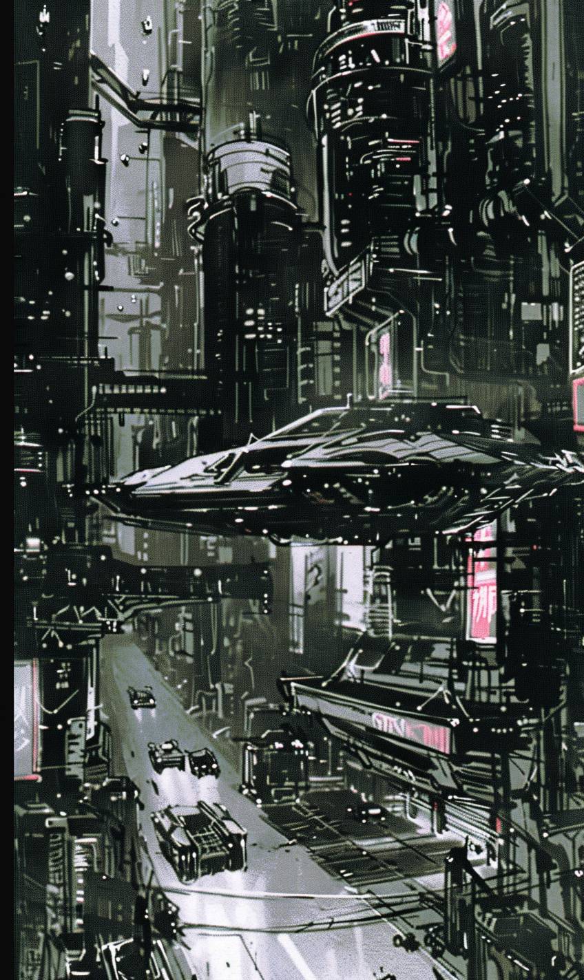 Night view of a futuristic city, towering skyscrapers and flashing neon lights, flying cars weaving through the sky --ar 3:5 --sref 1255503741 --v 6.0