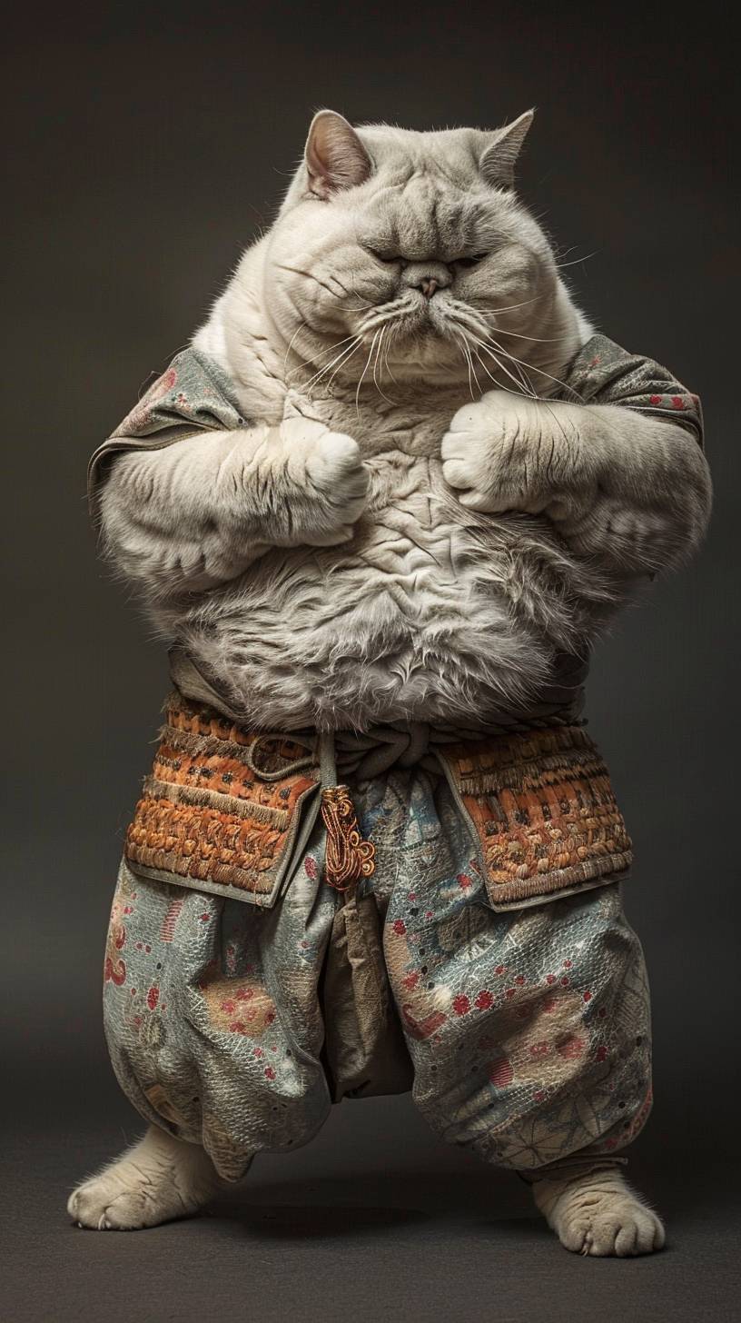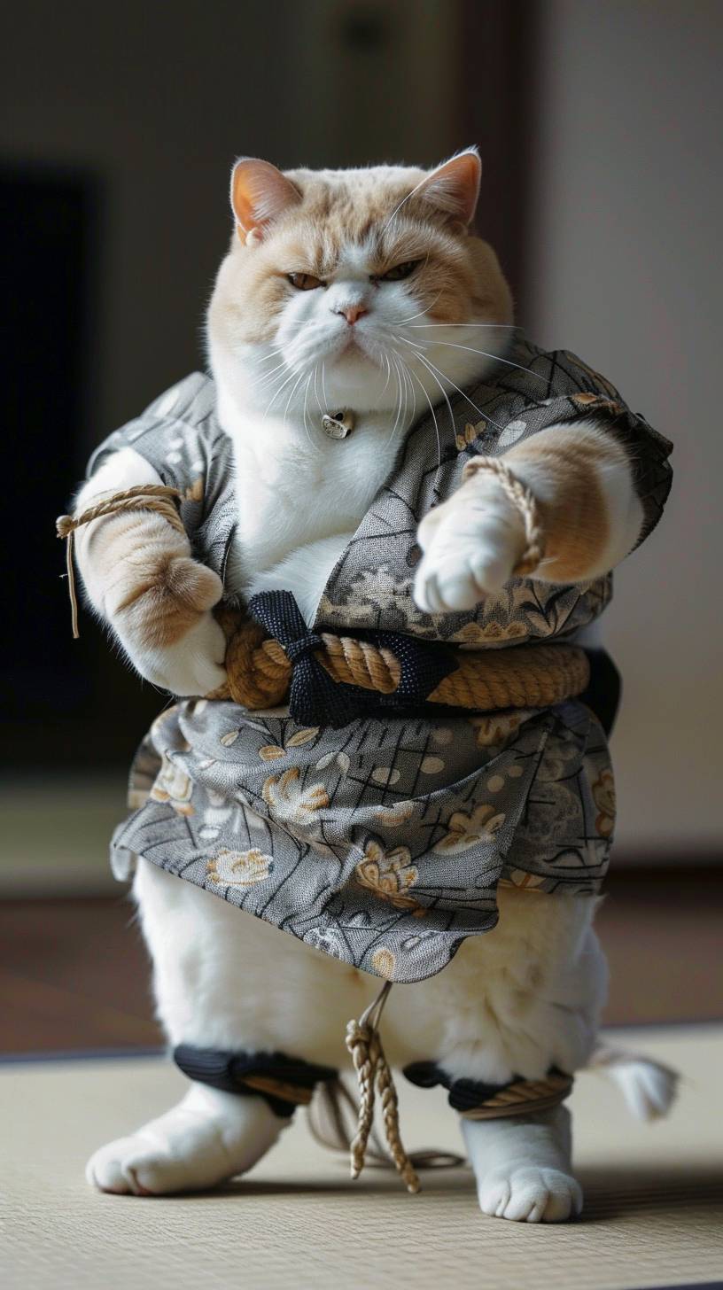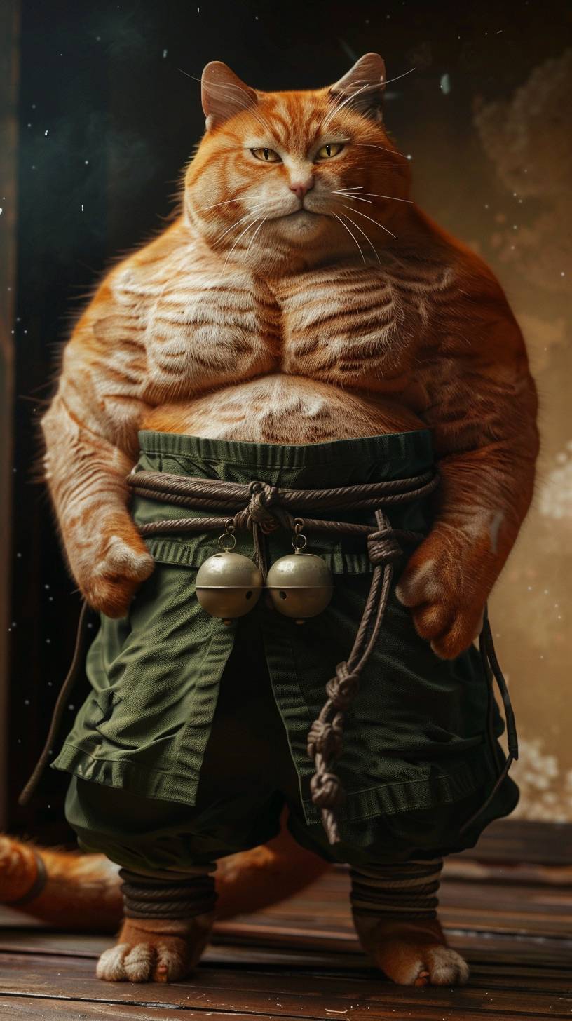 a fat cat sumo fighter, it should look like a real photo made with a real camera and a real cat --ar 9:16 --v 6.0