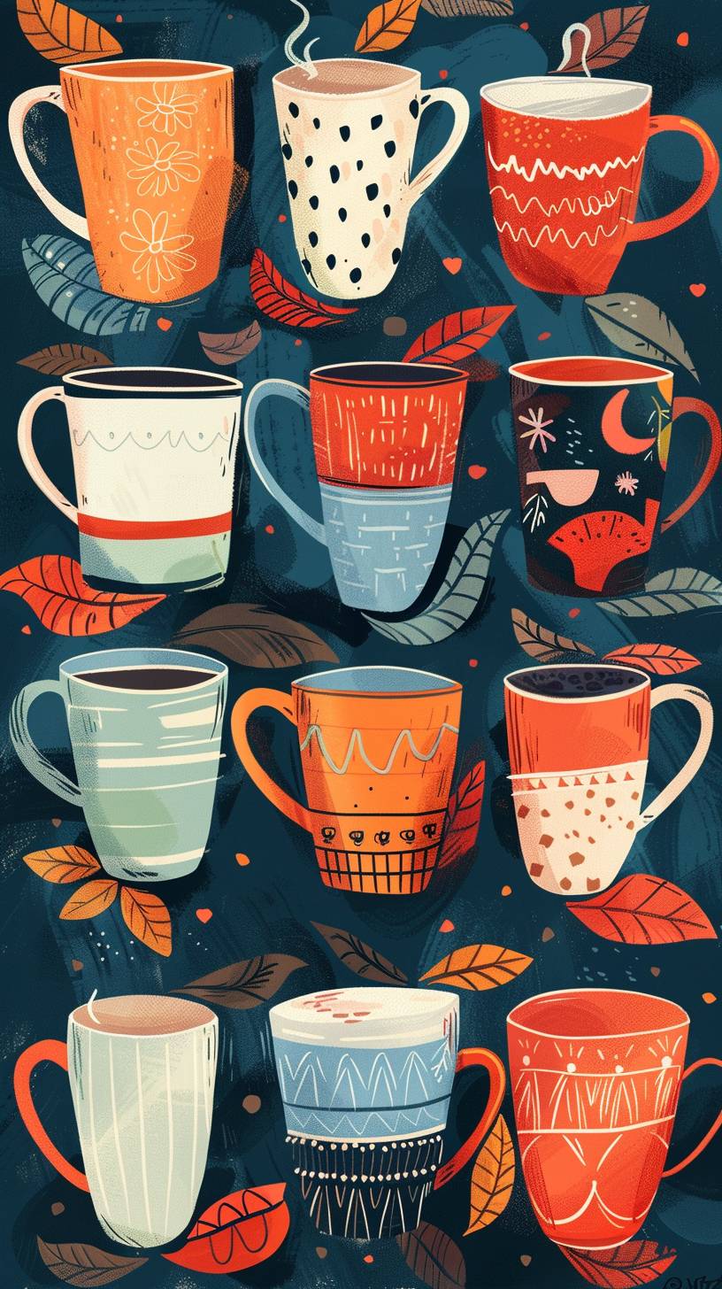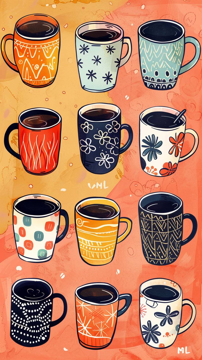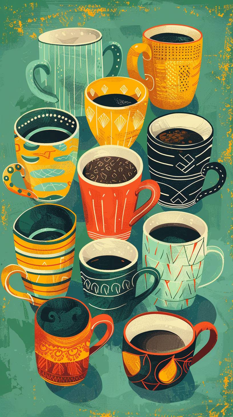 Illustrationsdruck von verschiedenen Kaffeetassen-Designs