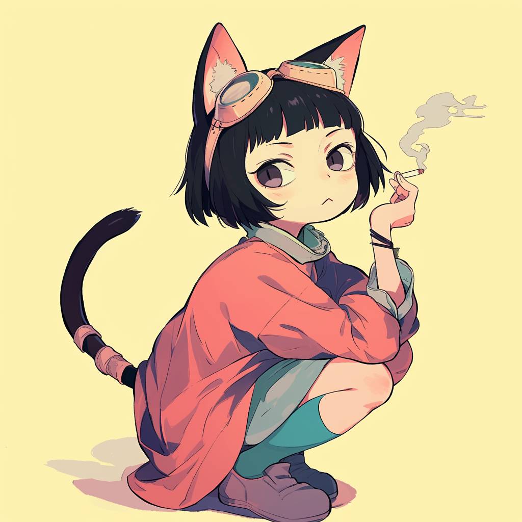 Niedliche Tekkonkinkreet-Katze im Chibi-Animestil