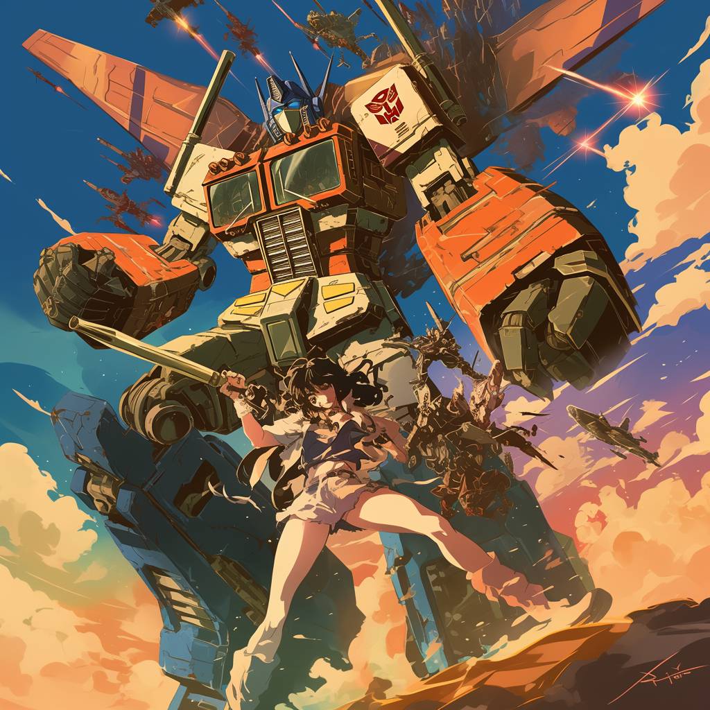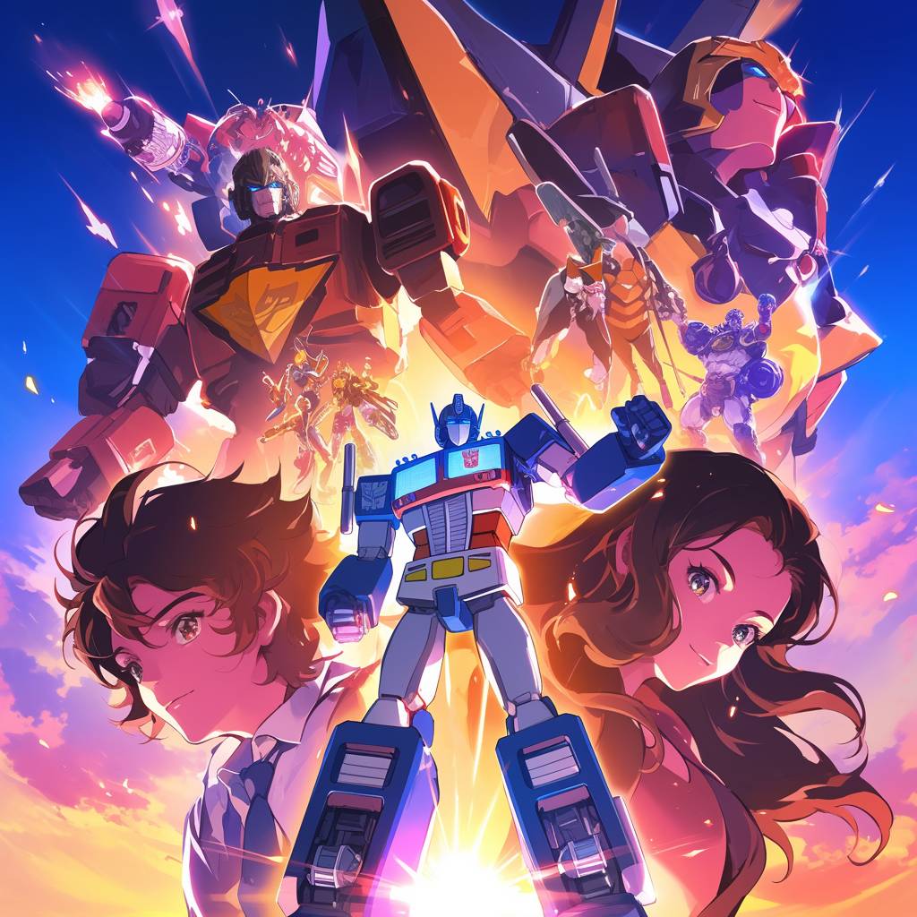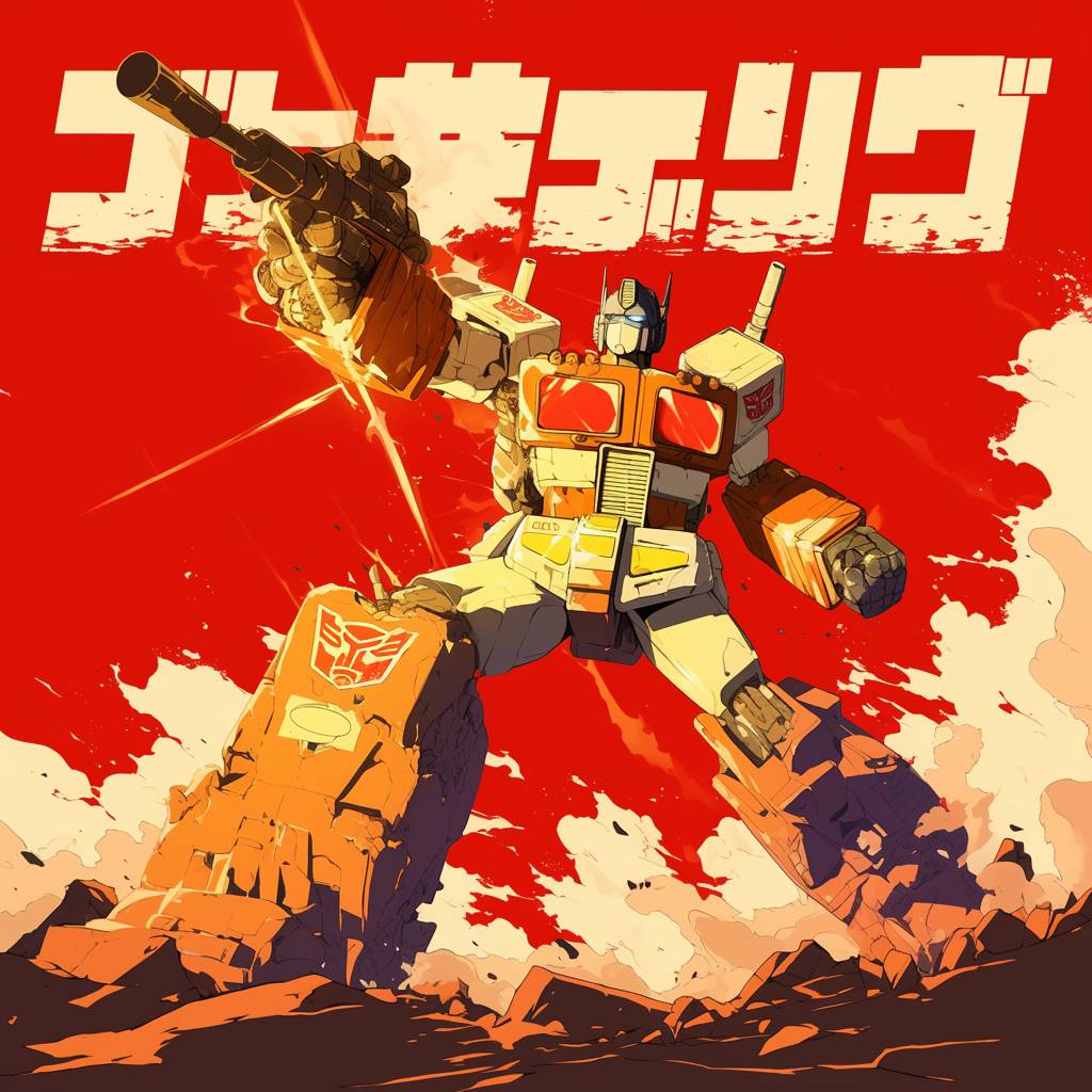 Filmplakat zu Transformers der 1970er Jahre im Mecha-Animestil