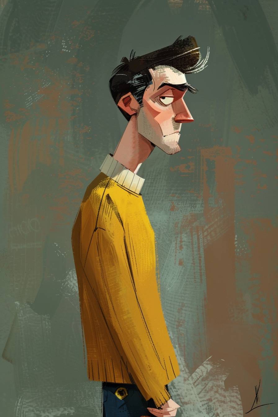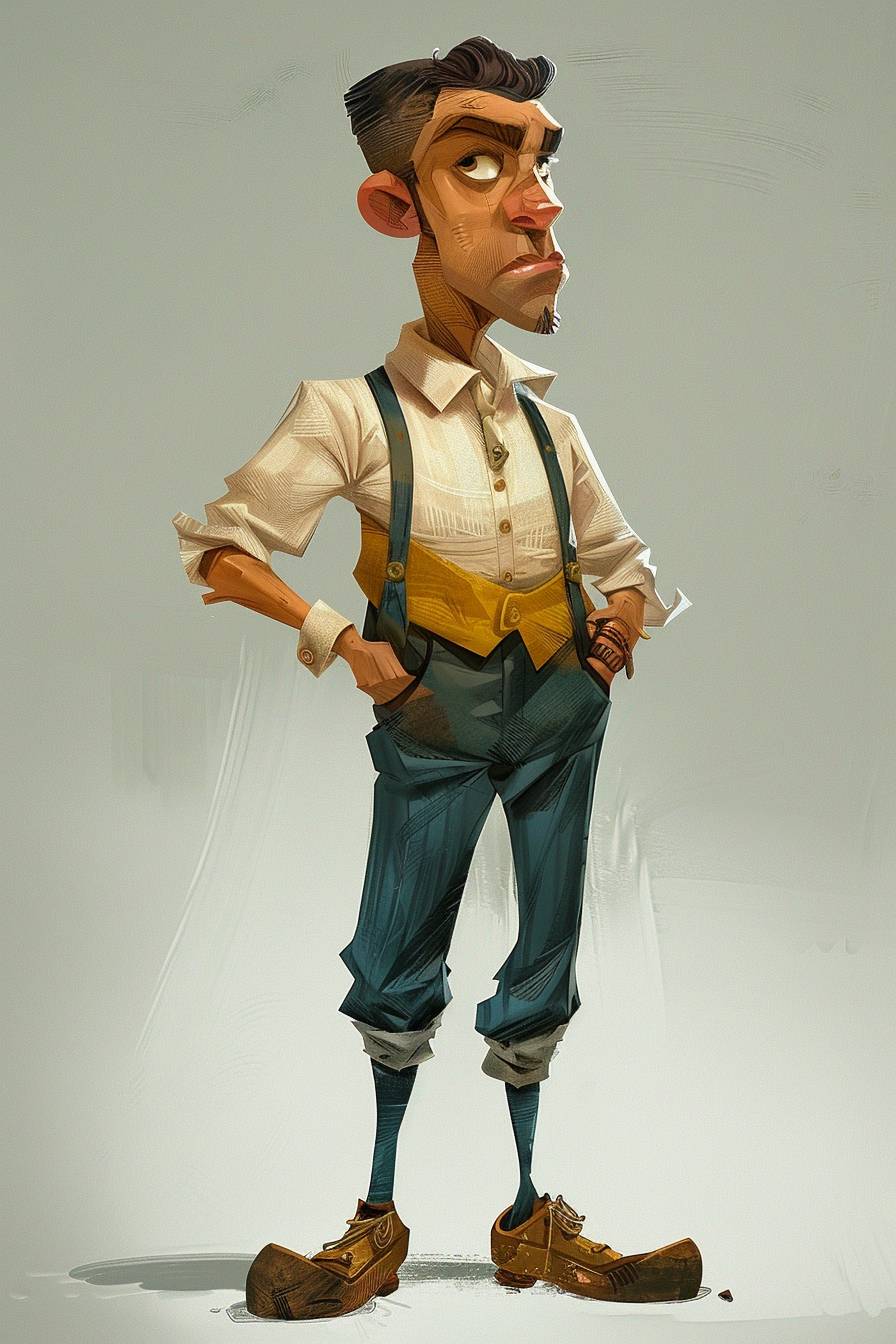 Charakterkonzeptdesign im Stil von Hergé, Halbfigur
