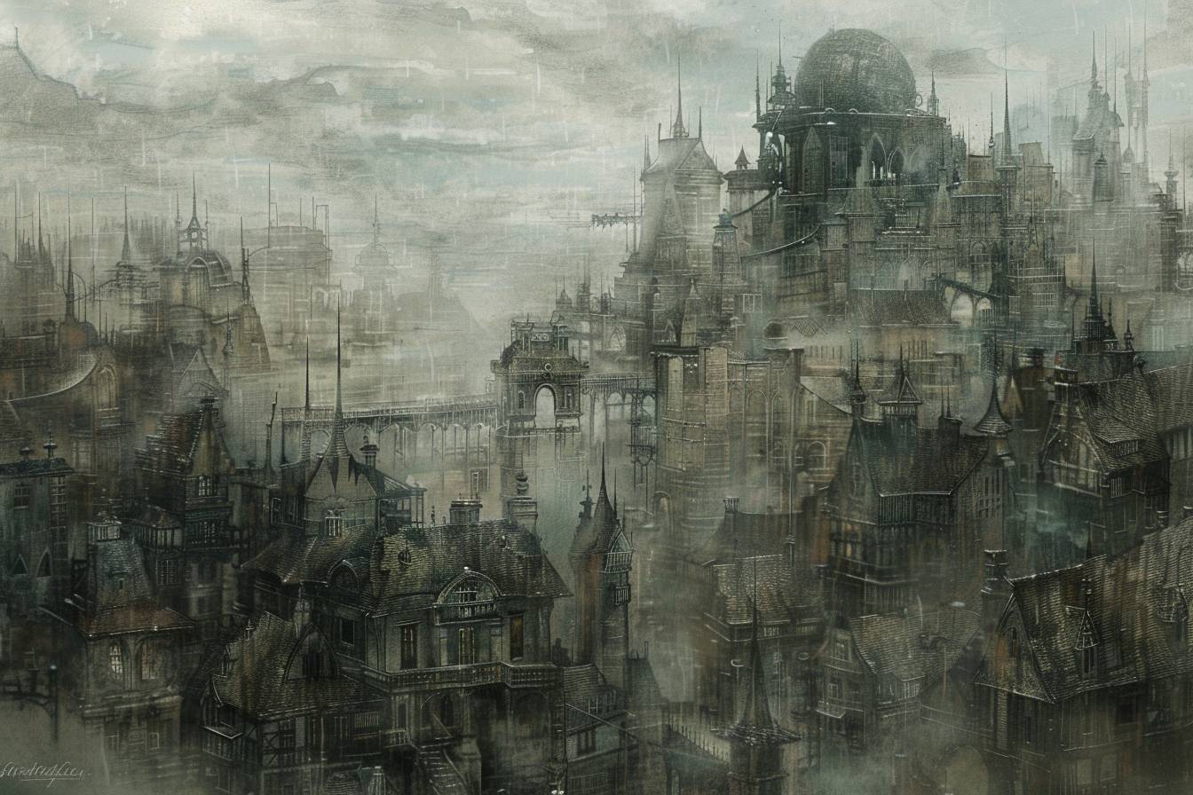Stadtlandschaft im Stil von Akihiko Yoshida