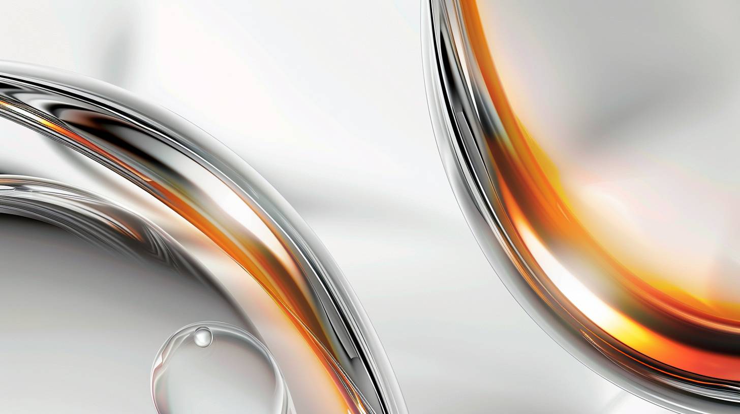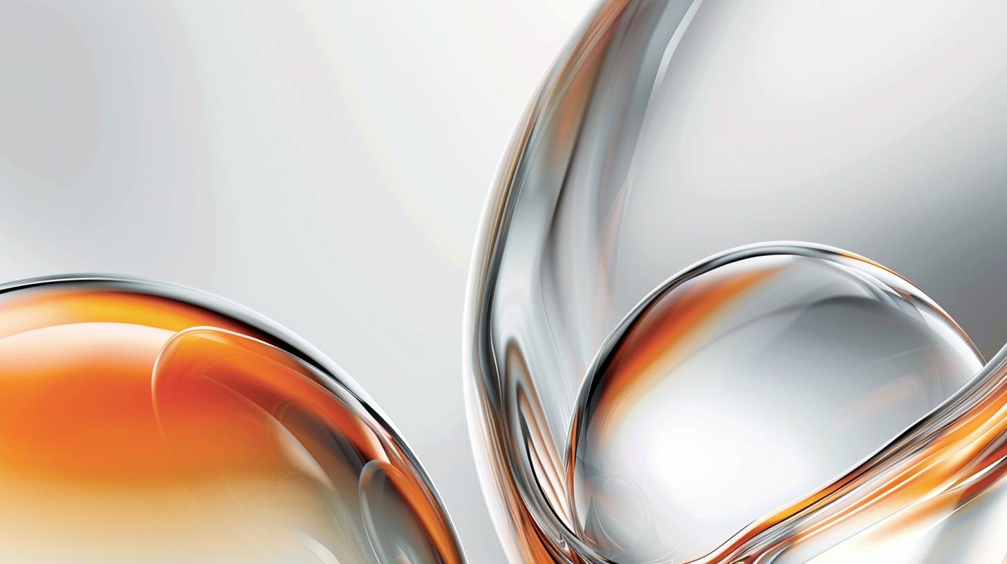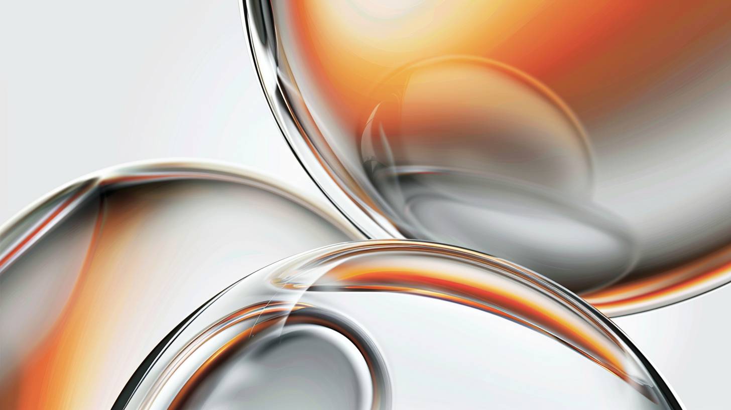 A white background with an orange and grey gradient, with smooth curves in the shape of two half circles on top left and bottom right, with glass spheres in the foreground and glass sphere in the background, light gray background, blurred edges, modernist design style, focus stacking, simple shapes, soft gradients, linear elements, in the style of modernist artists --sref <https://s.mj.run/3mxZwKzYqiU> --ar 16:9 --v 6.0