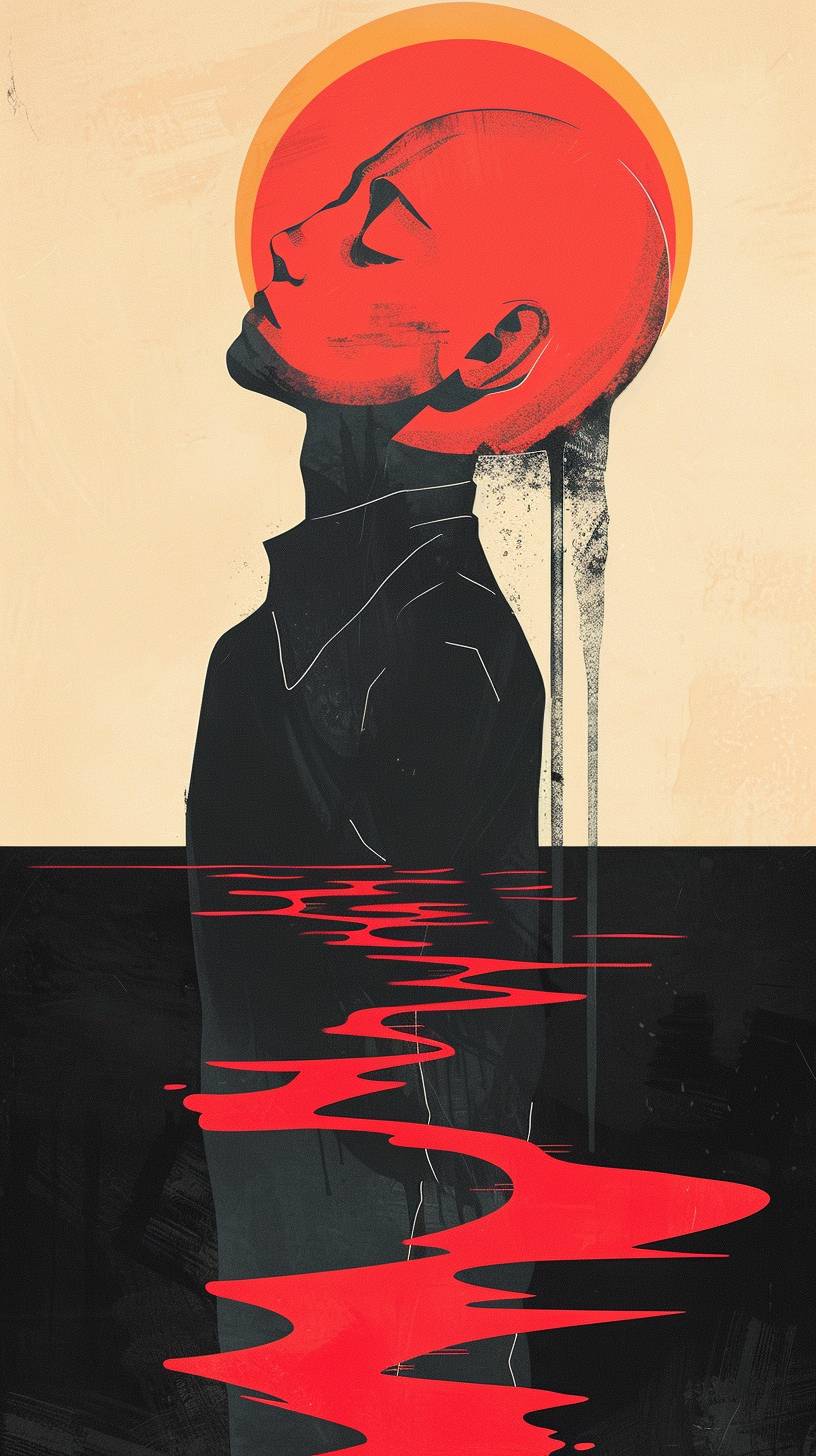 Neu interpretierte menschliche Form im Stil eines minimalistischen Illustrators, ikonische Albumcover, Farbe und Farbe, Stop-Motion-Animation, verlängerte Formen, flache Illustrationen