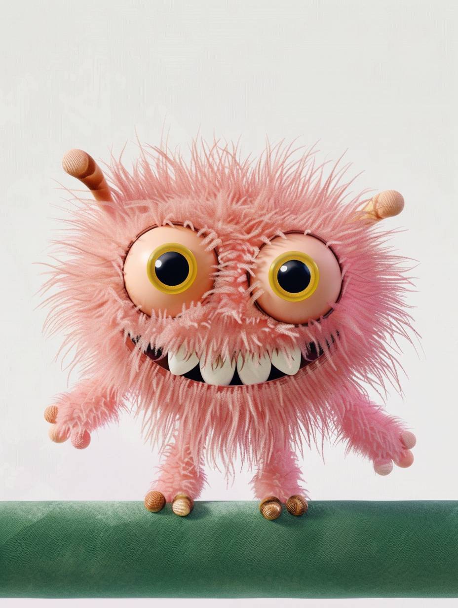 Ein rosa pelziger Monster lächelt im minimalistischen traumhaften Stil