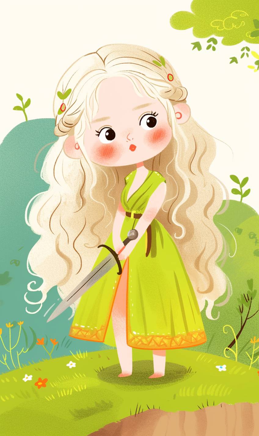 A simple drawing of Daenerys Targaryen, in the style of Allie Brosh with simple lines, flat colors and a stick figure, minimalistic, simple background --ar 3:5 --style raw --sref 4097491715 --niji 6