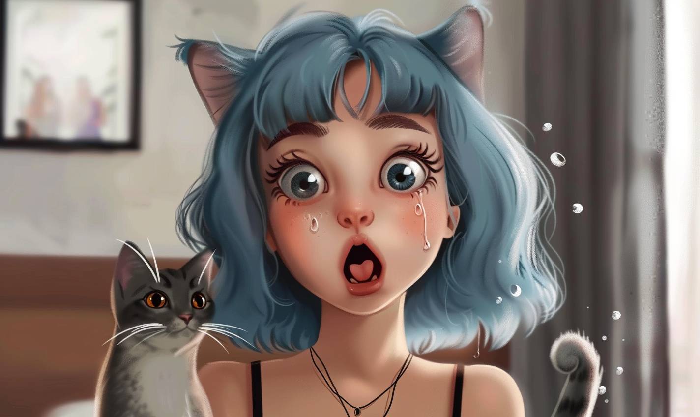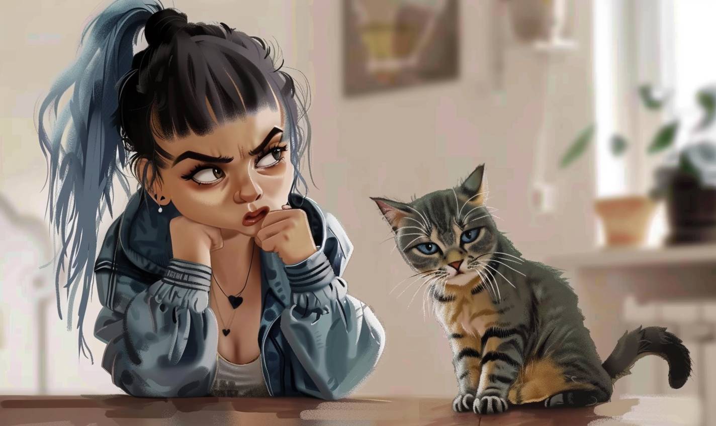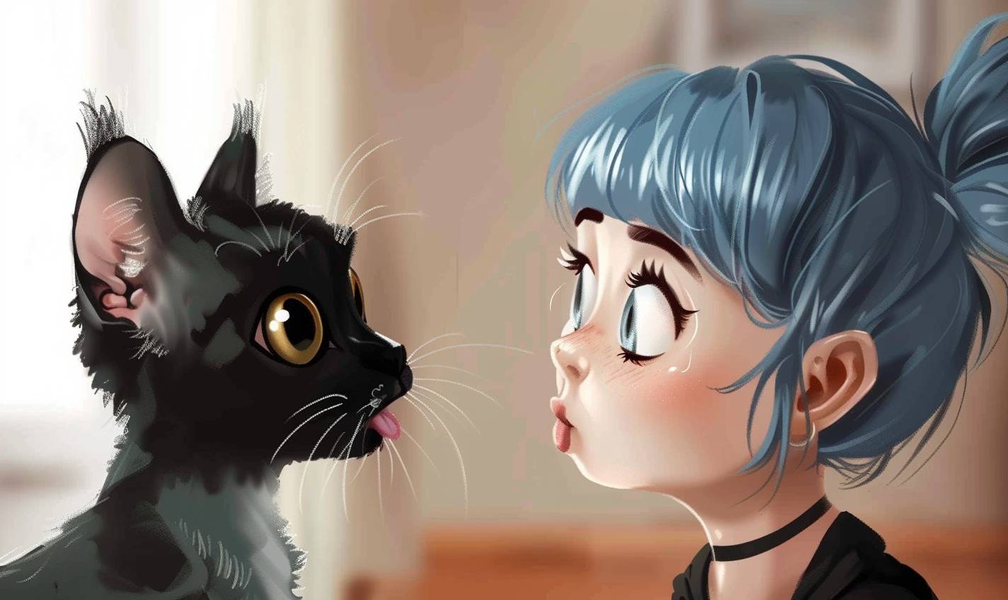 Bulma macht der Katze einen Spaß.