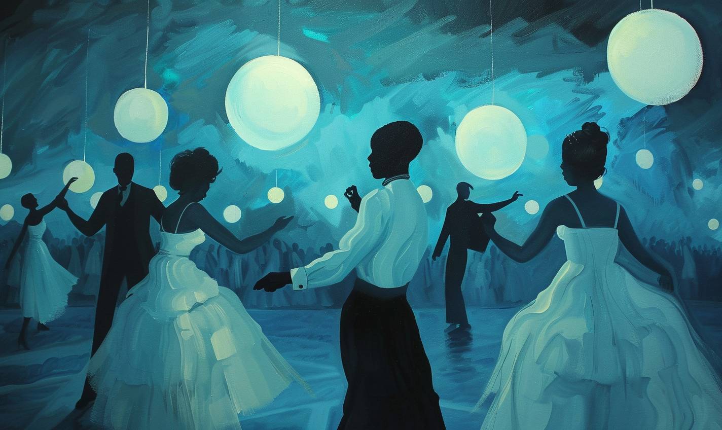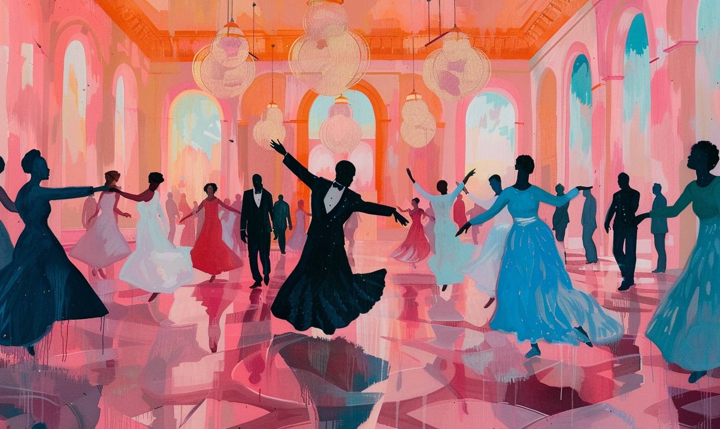 Ätherischer Ballsaal mit phantombesen Tänzern