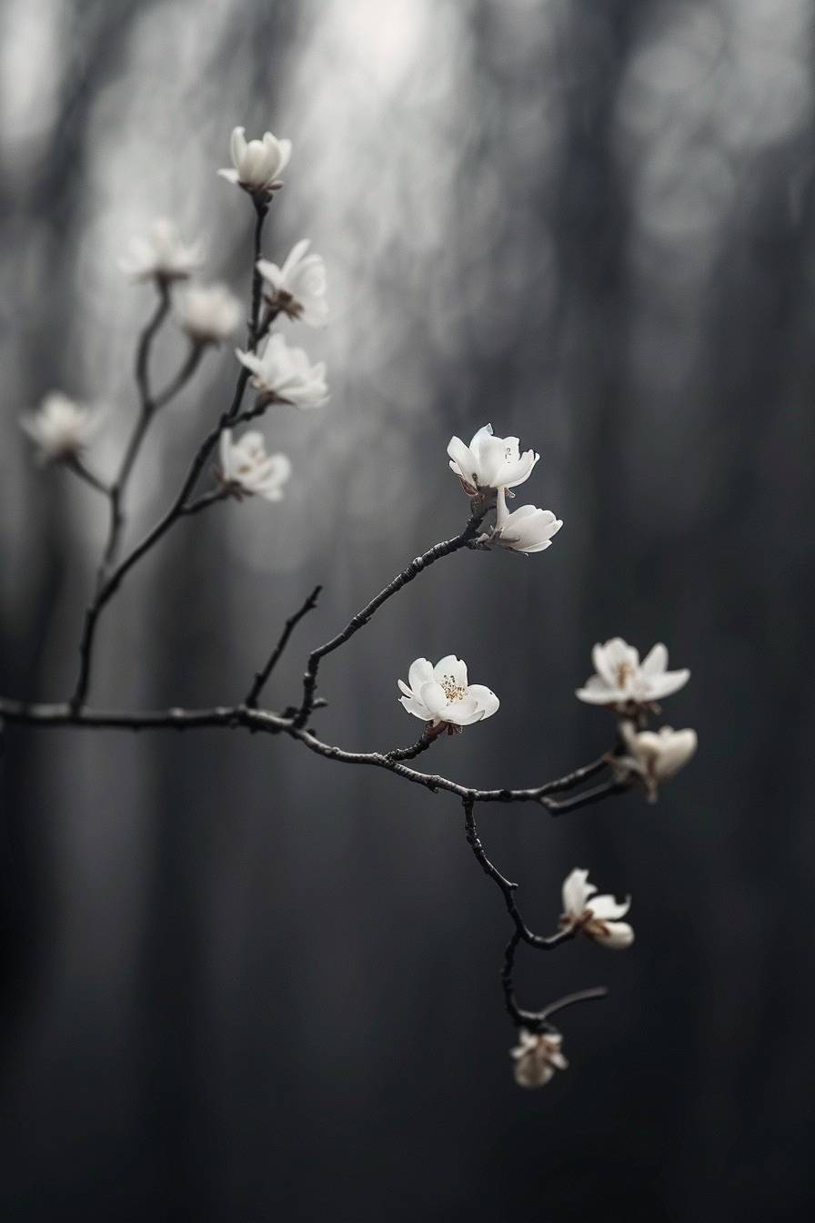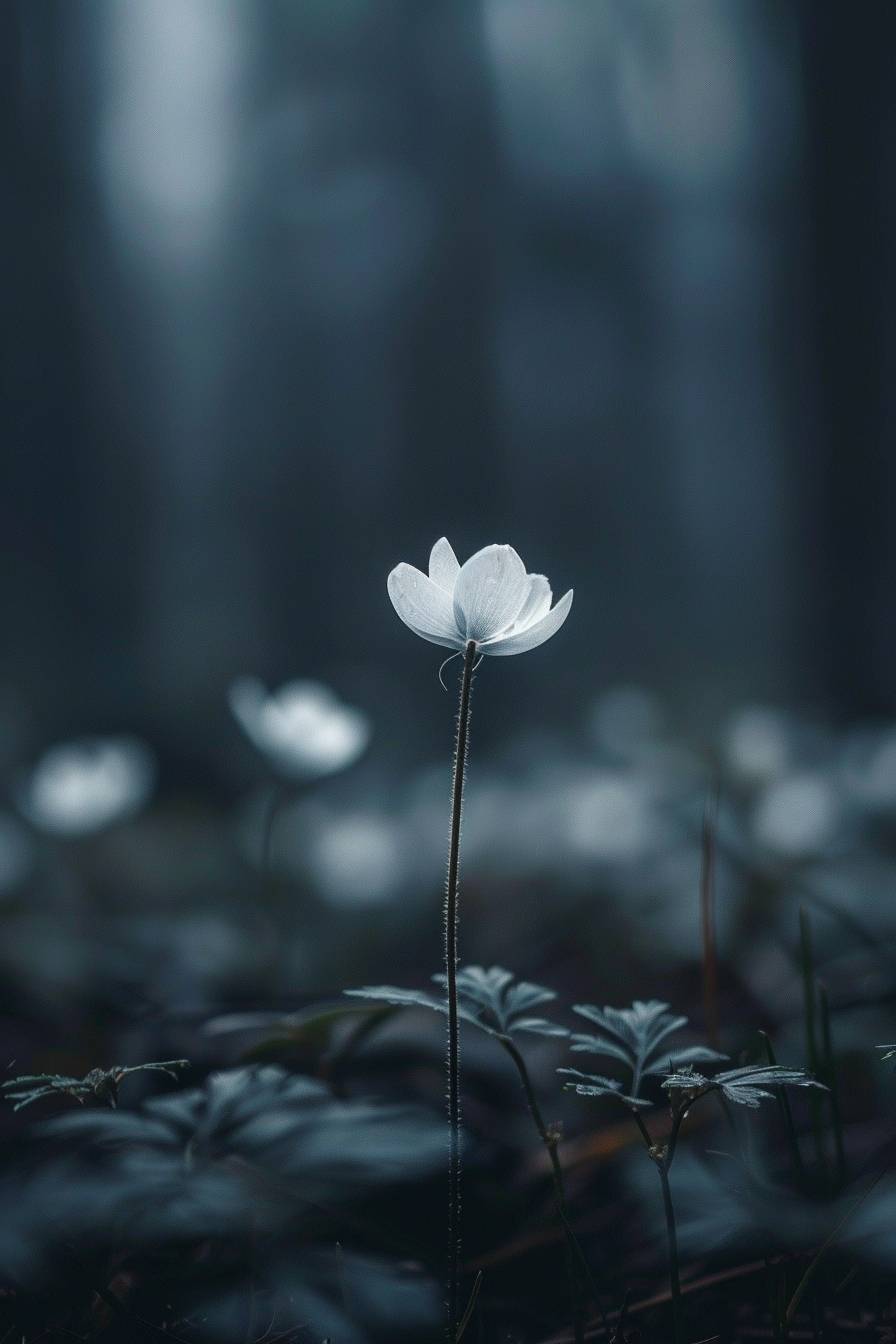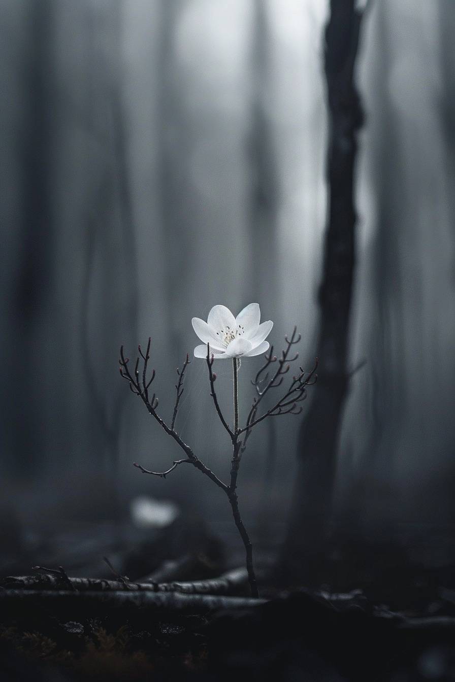 macro photography by Nathan Wirth, aesthetic beautiful white details, object on focus, dark forest background, beautiful, minimalist --ar 2:3 --v 6.0