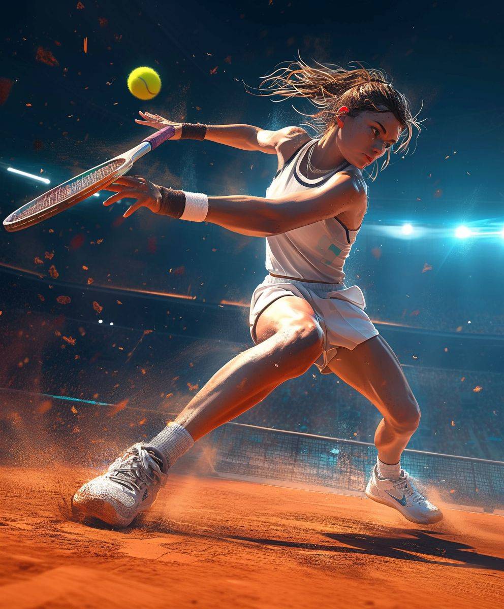 Ein epischer Actionschuss im Stil der professionellen Sportfotografie, angesiedelt in einem Hochintensitäts-Sport. Erfassen Sie einen dynamischen Moment eines Sportlers. Einzigartiger Kamerawinkel. Lebendige Beleuchtungseffekte. Hintergrundumgebung voller Energie.