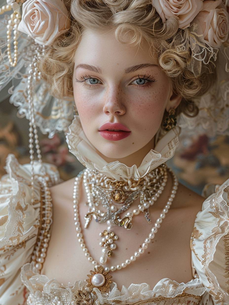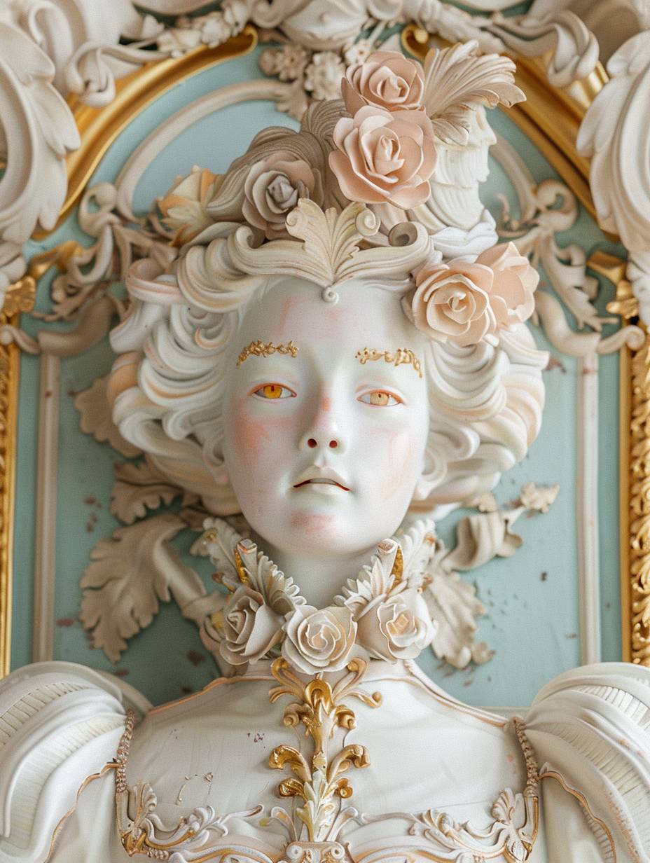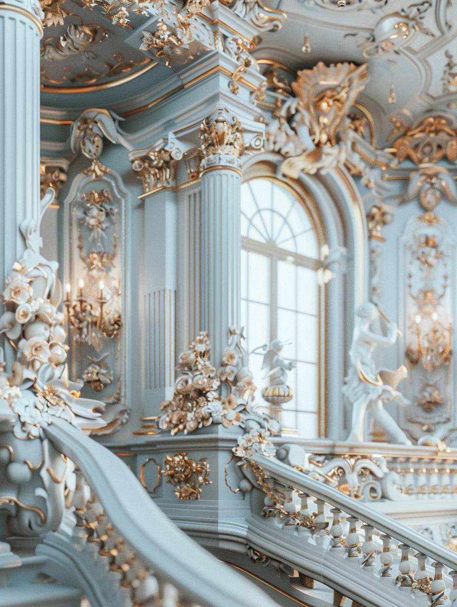 Rokoko-Stil mit eleganten, ornamentalen Details, goldenen Akzenten und Pastellfarben