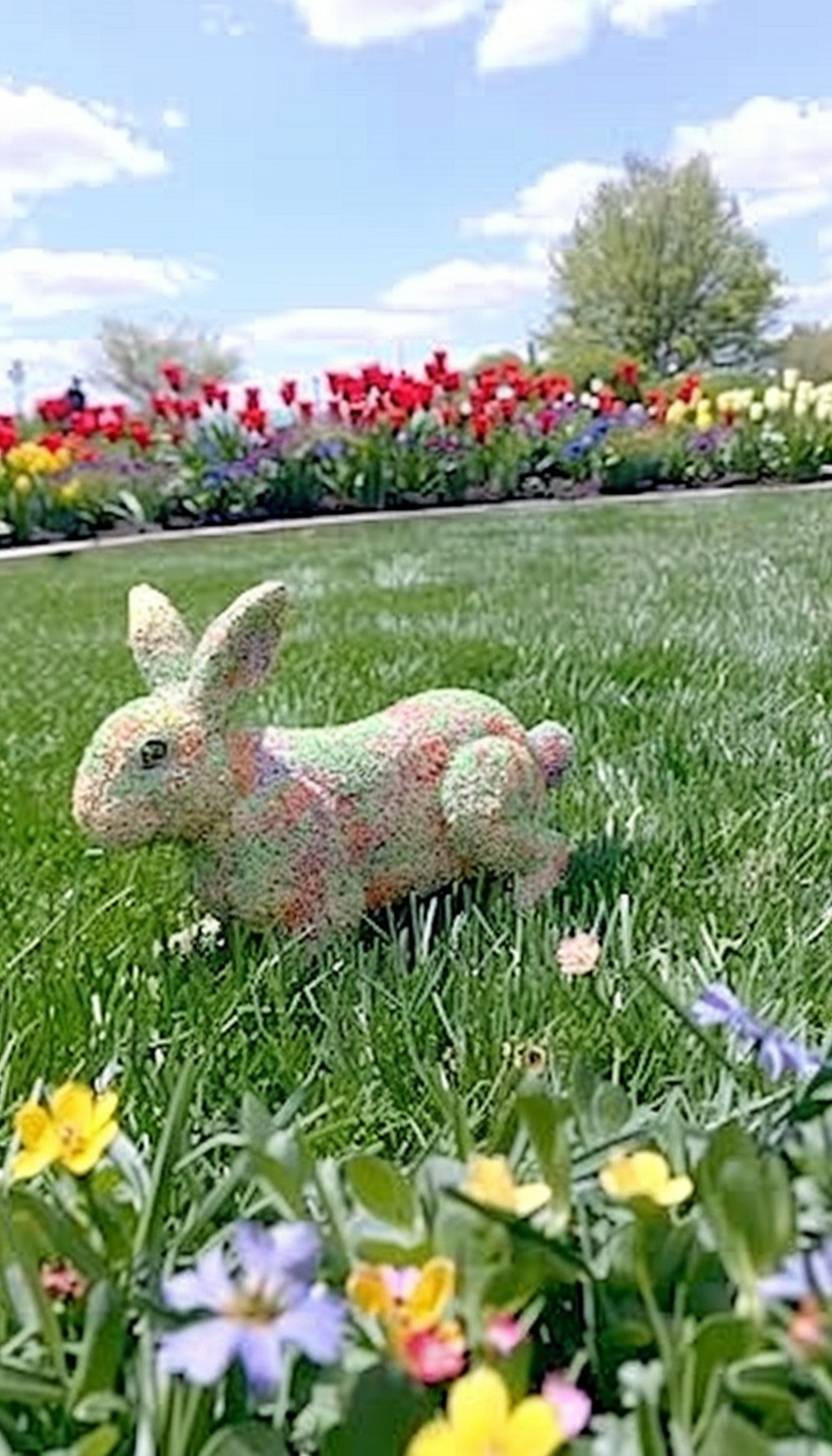 Ein aus Gras gemachter Hase an einem fantastischen Ort