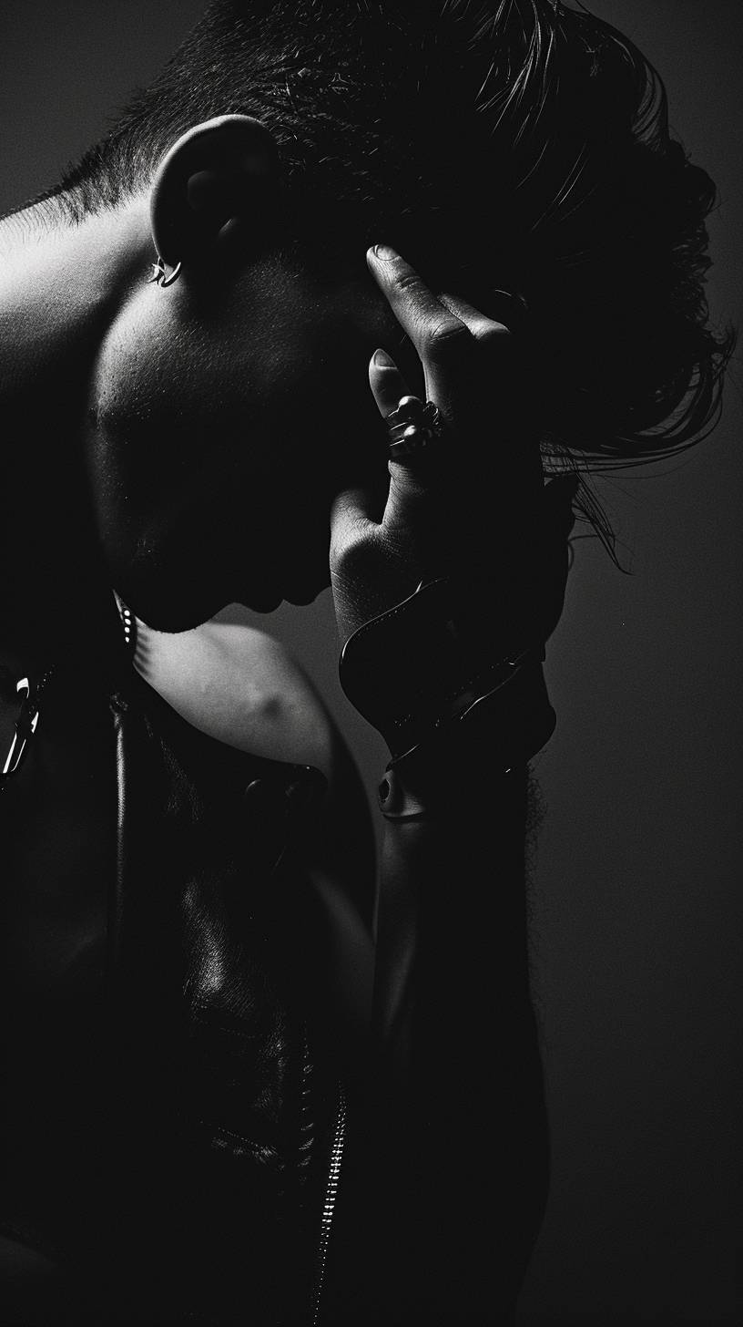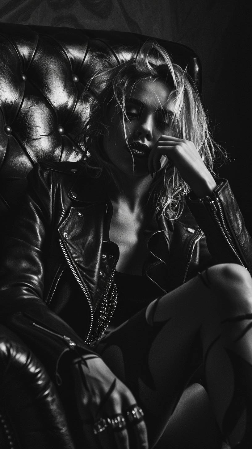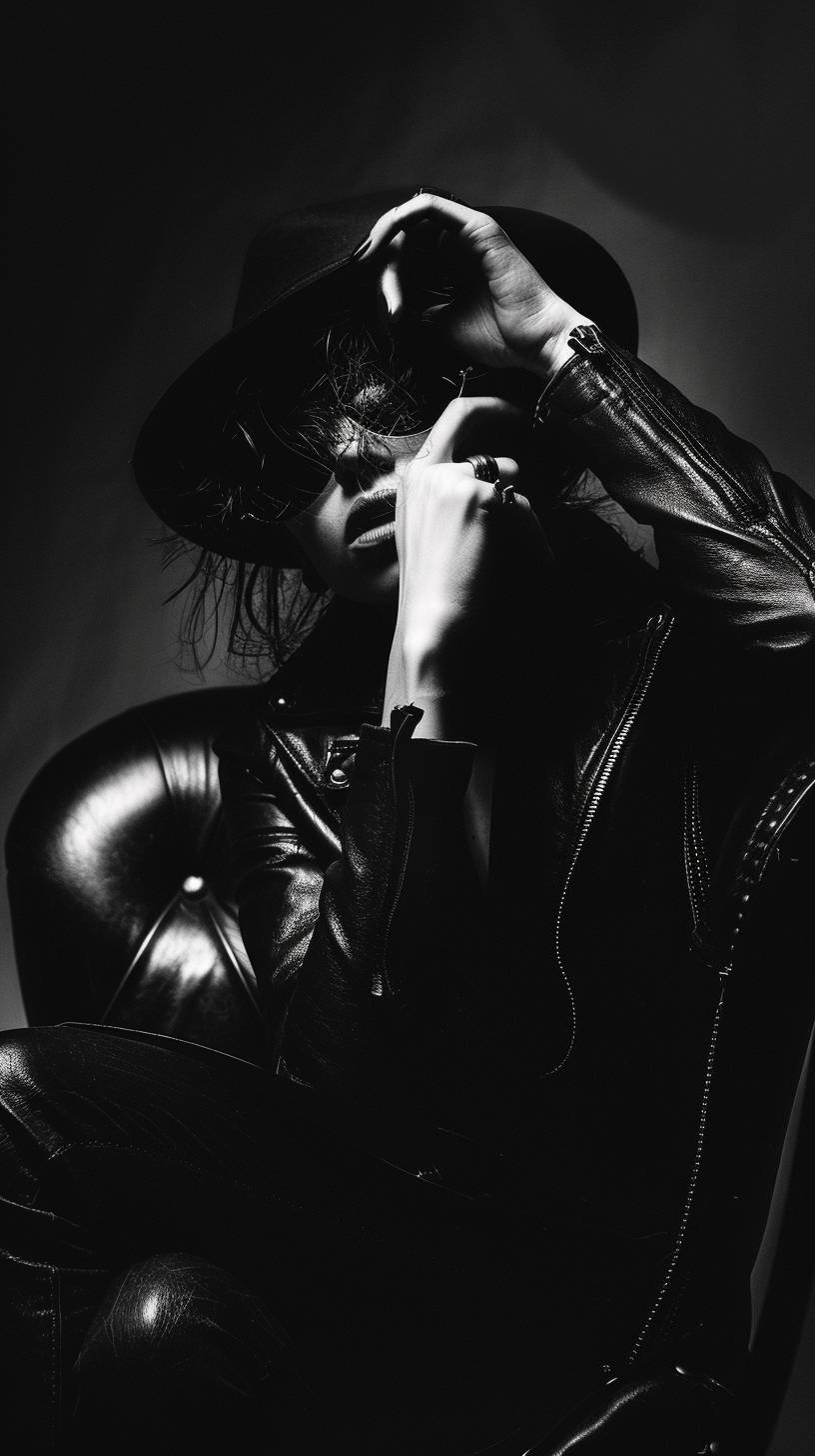 Analog photography , Defiant Model, leather, noir --ar 9:16 --s 50 --p a59ln1m --v 6.0