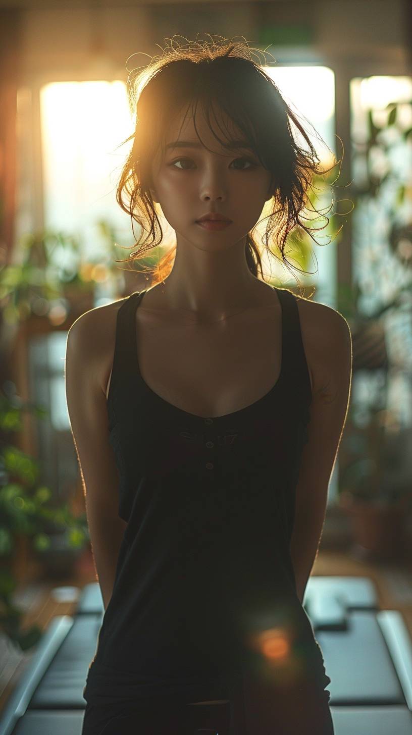 full body shot , Young and beautiful Korean girl doing Pilates on pilates reformers beds , on a Bright fitness room , black short hair , Body proportion coordination, complete appearance, clear hand and foot details , realistic photography, panoramic shooting, super definition --chaos 50 --ar 9:16 --style raw --sref 3496944470 --stylize 750 --v 6.0