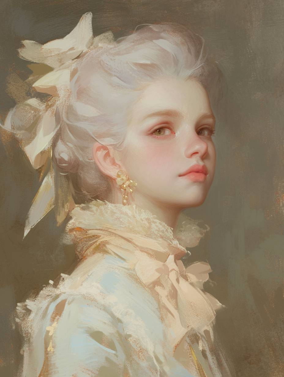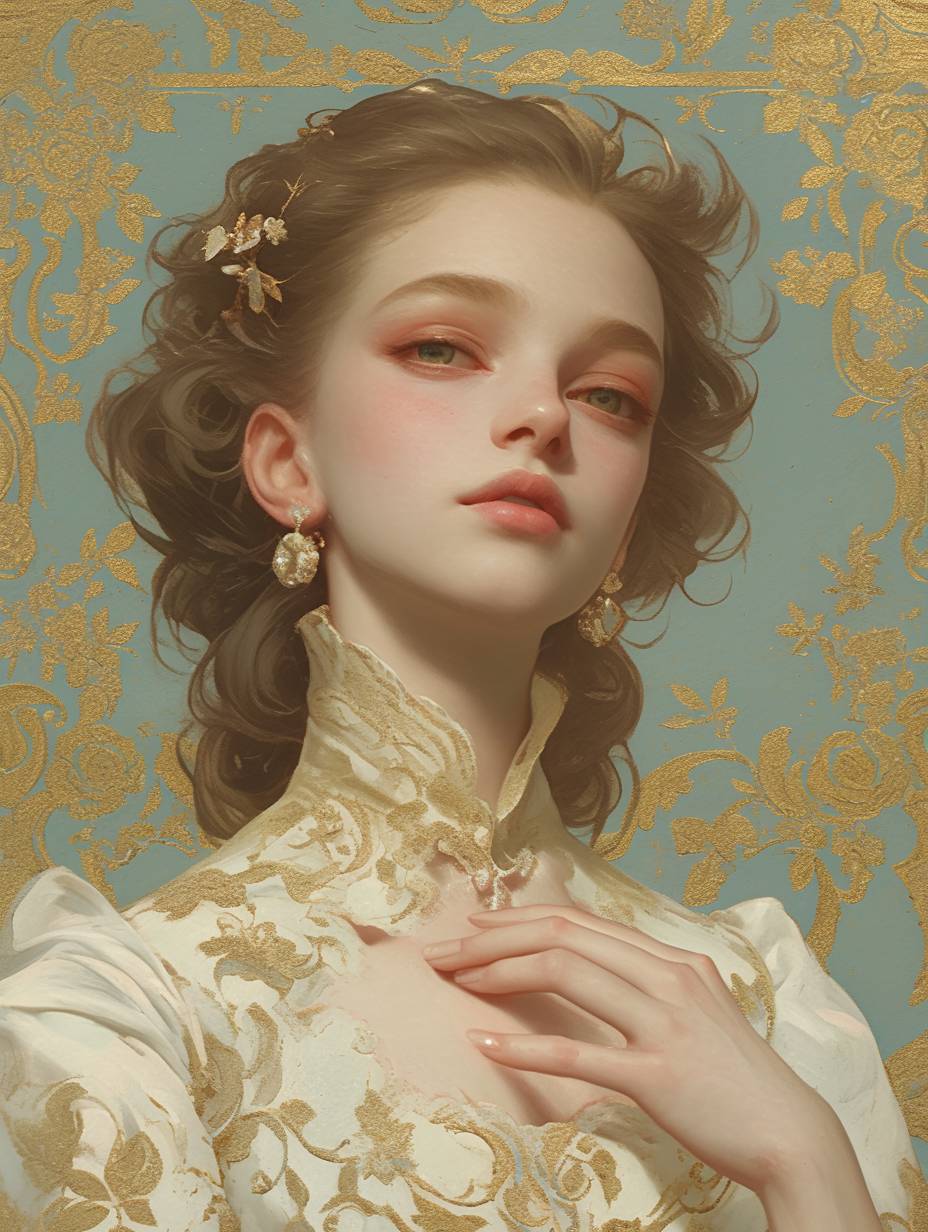 rococo style portrait oil painting of [SUBJECT] with elegant and ornate details, gold accents and pastel colors --ar 3:4 --niji 6
