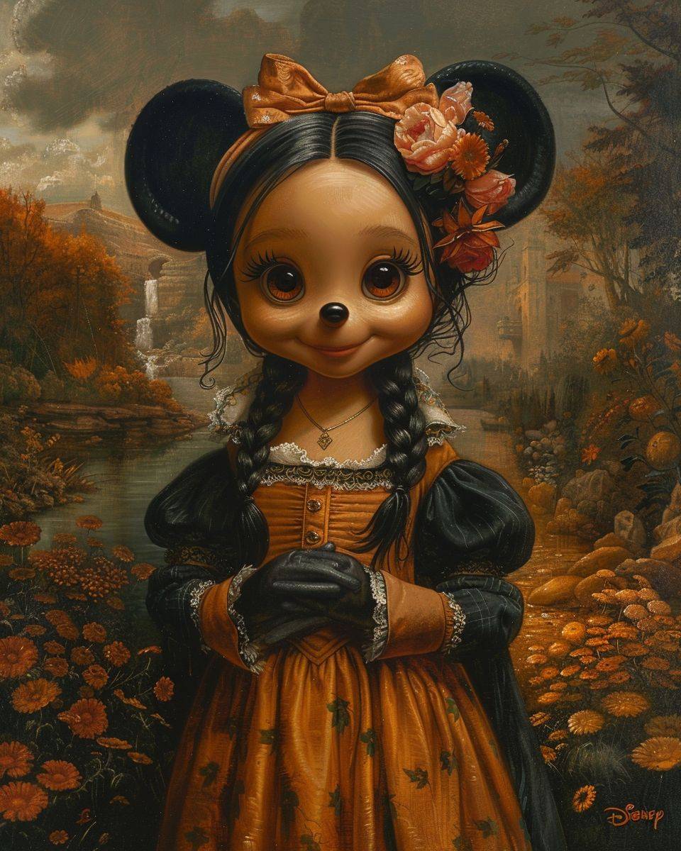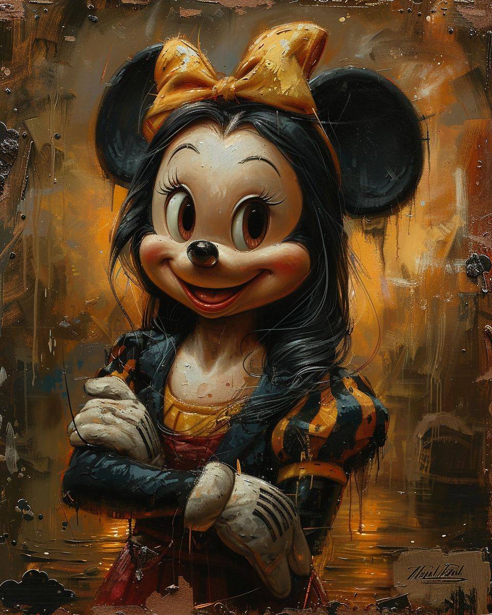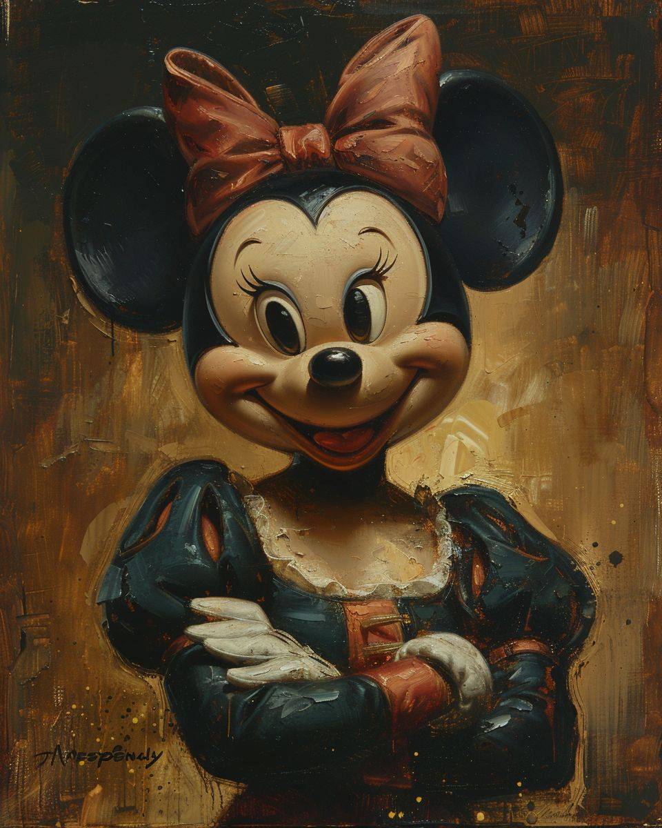 Ein Gemälde der Mona Lisa von Leonardo da Vinci im Disney-Stil.