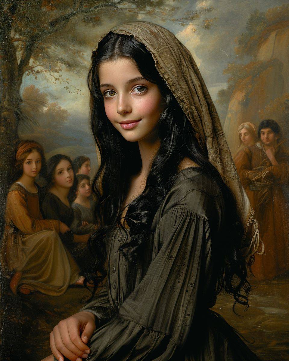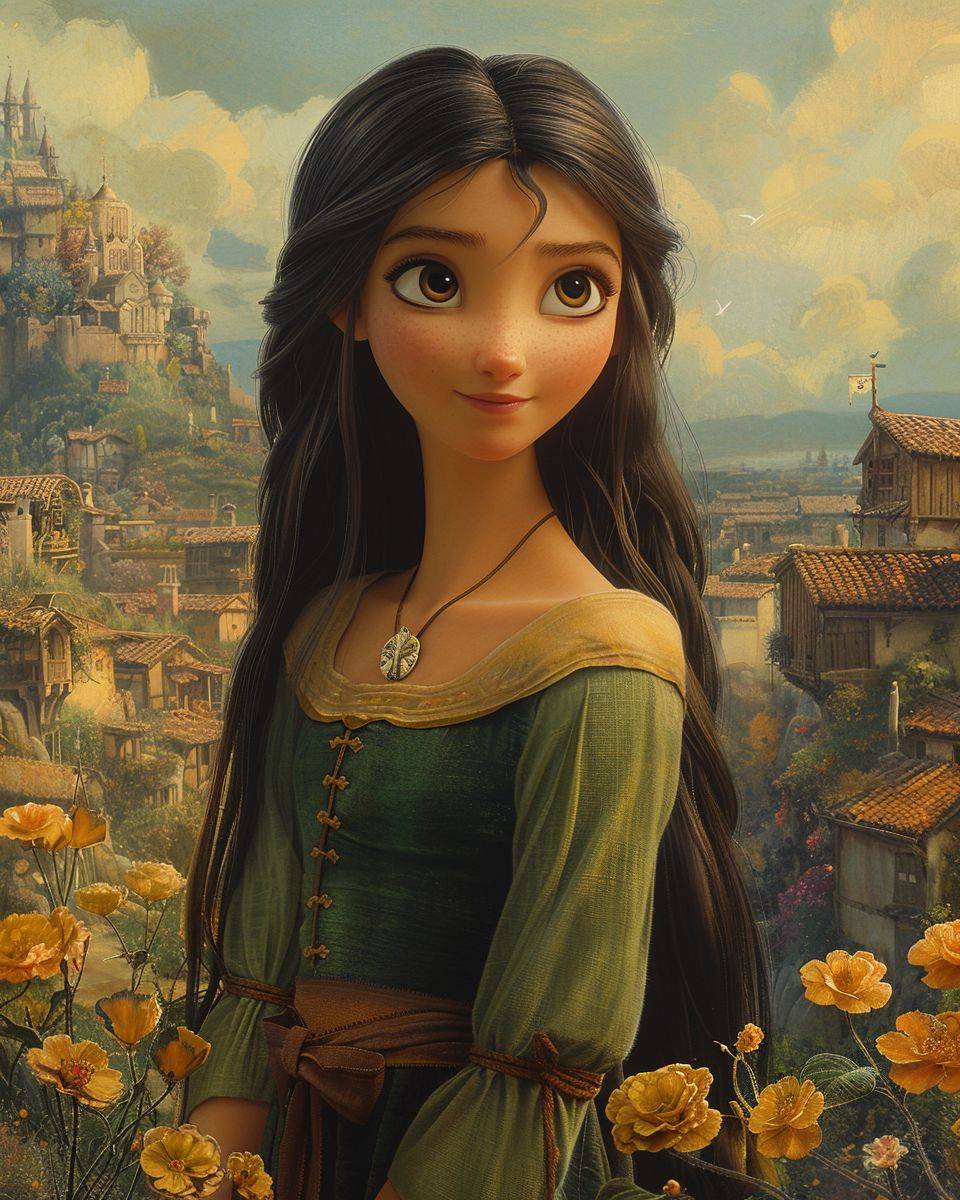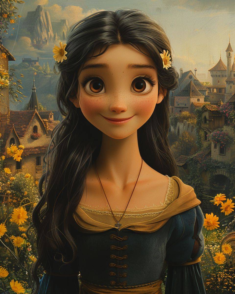 Ein Gemälde der Mona Lisa von Leonardo da Vinci im Disney-Stil.