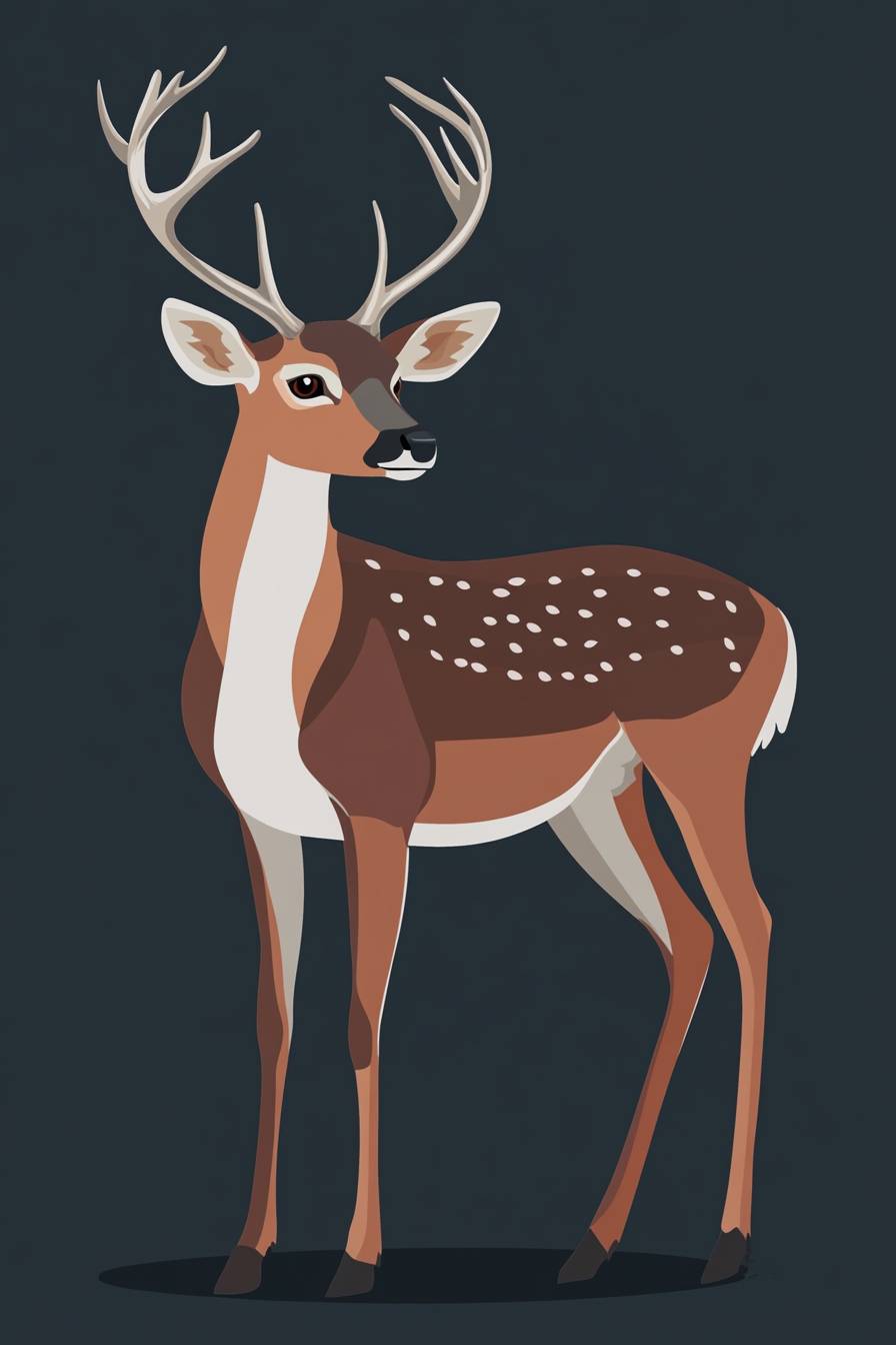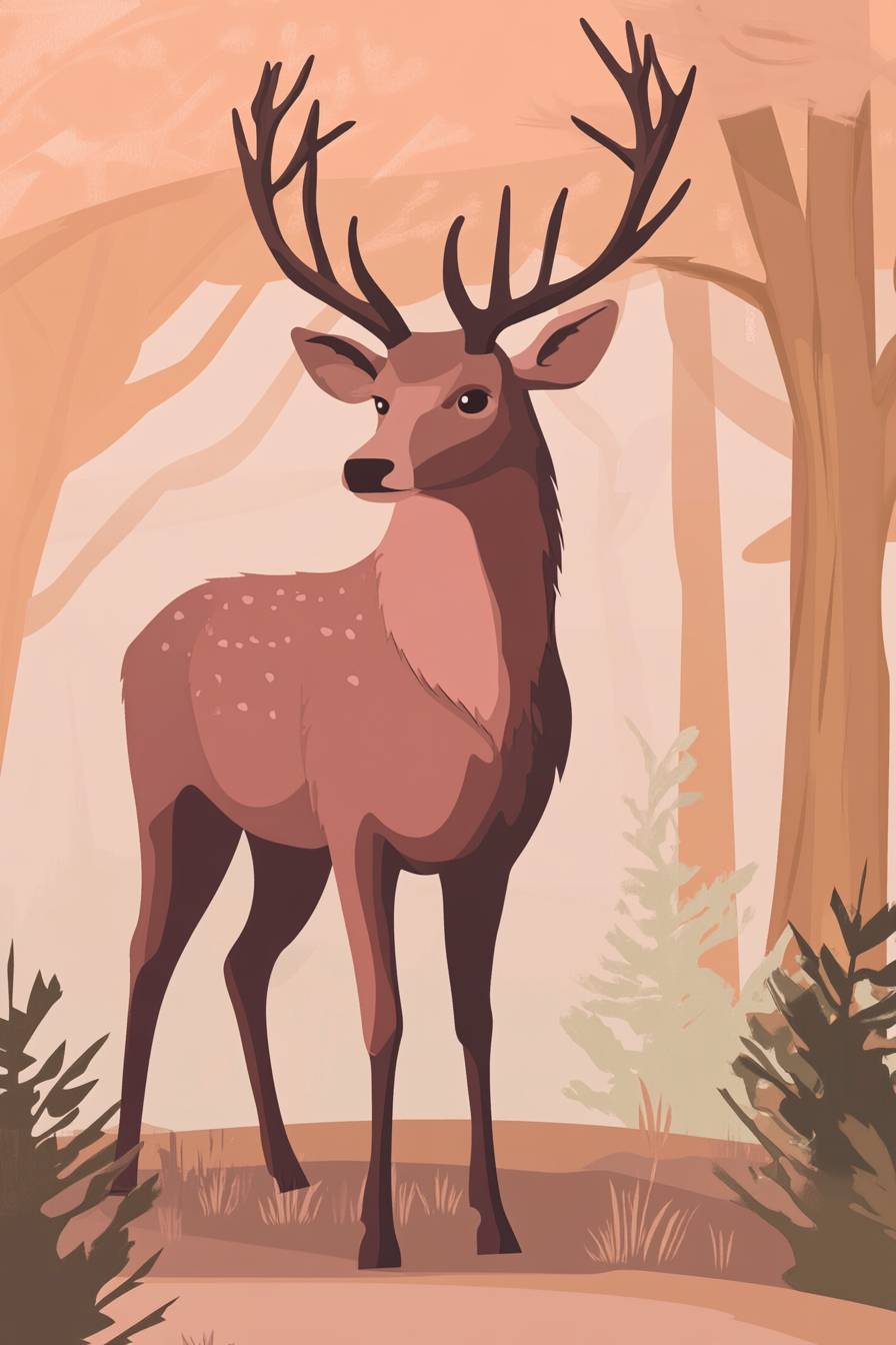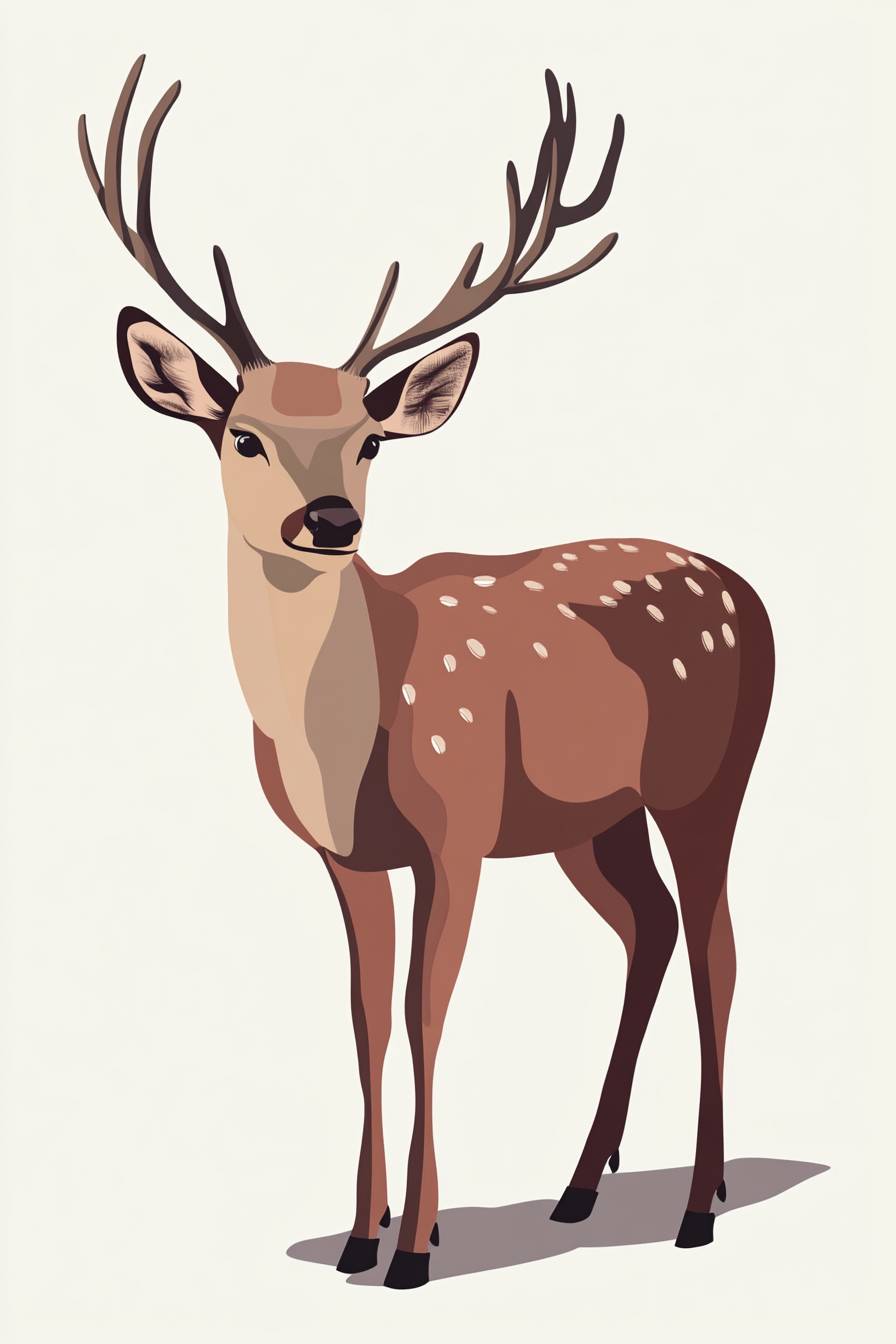 2D-Illustration, ein Hirsch mit Geweih, flache Farben