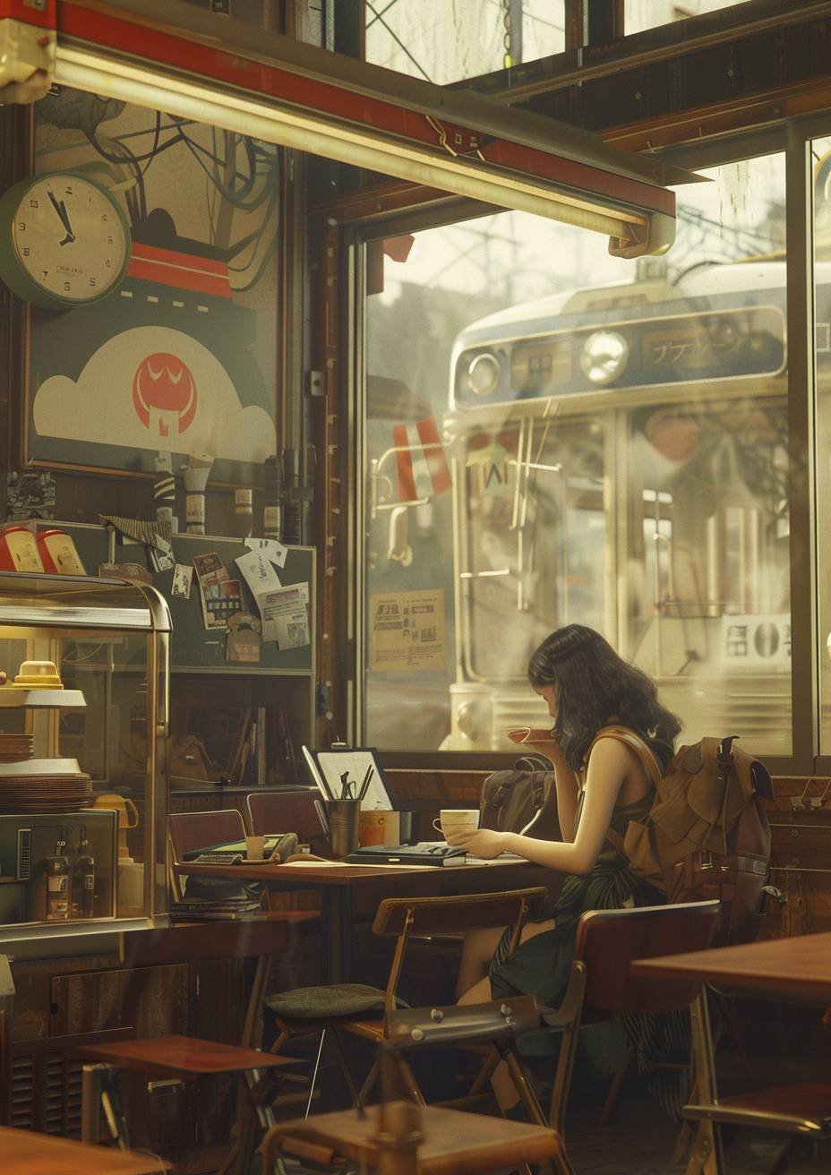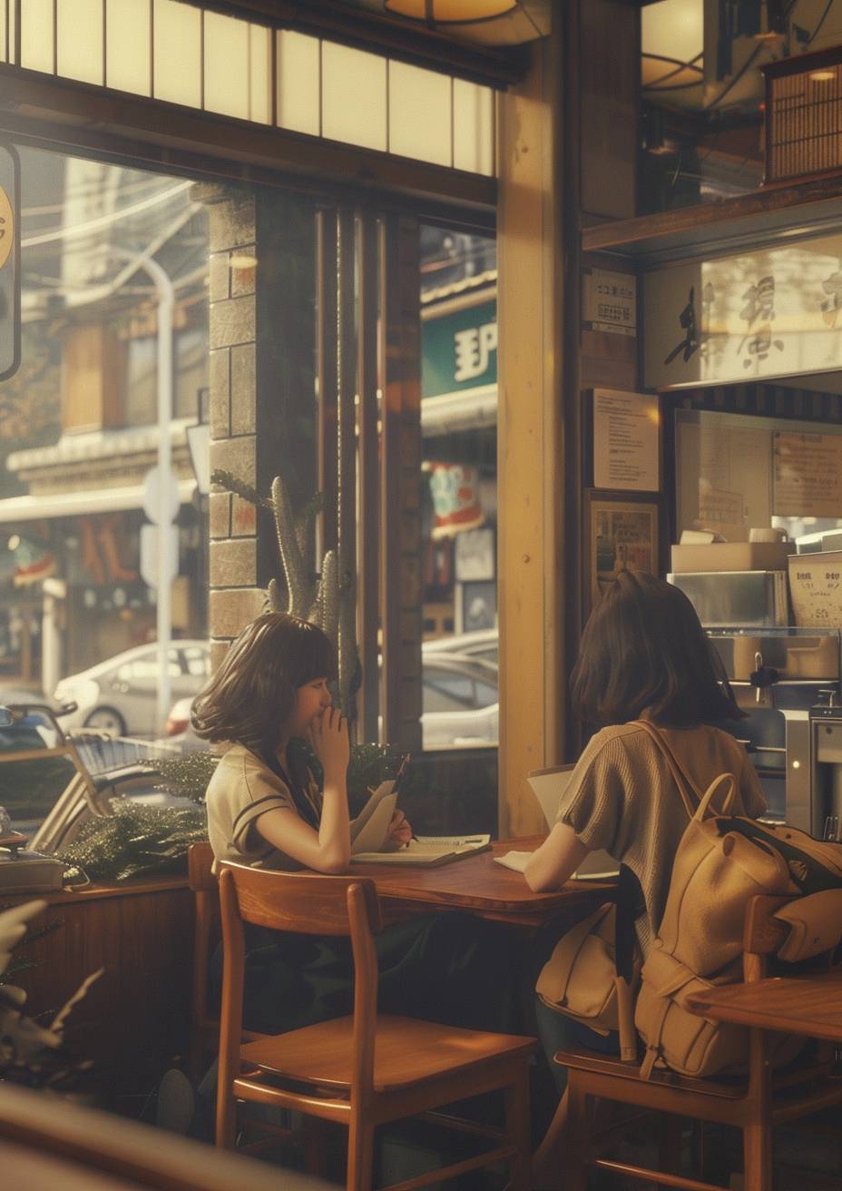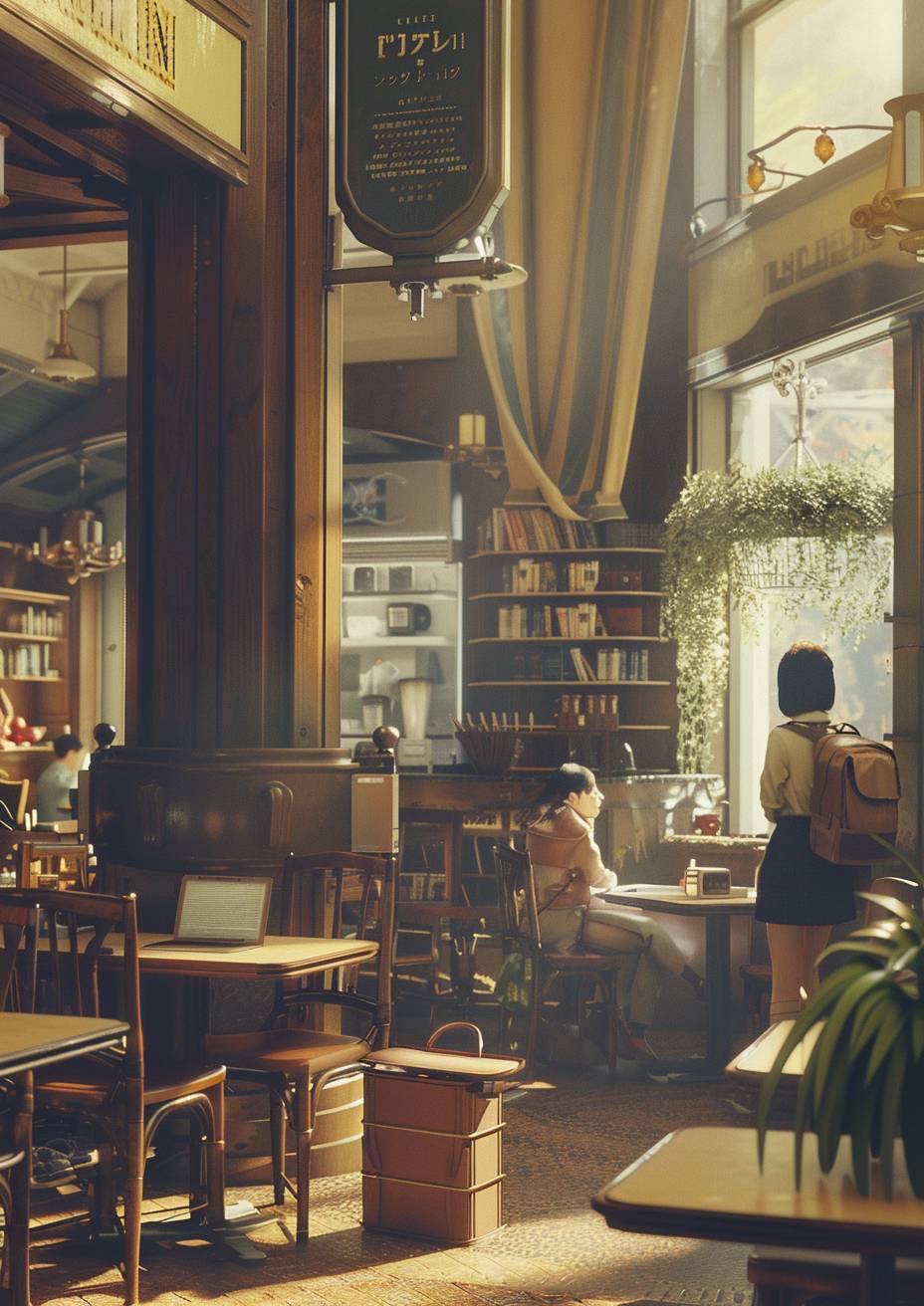 Chihiro studiert in einem gemütlichen Café.