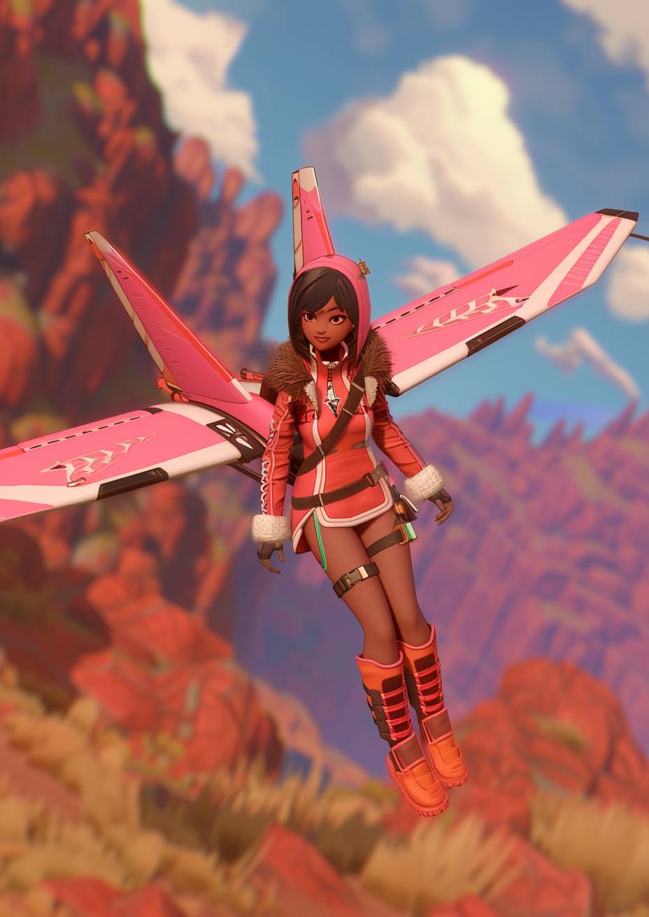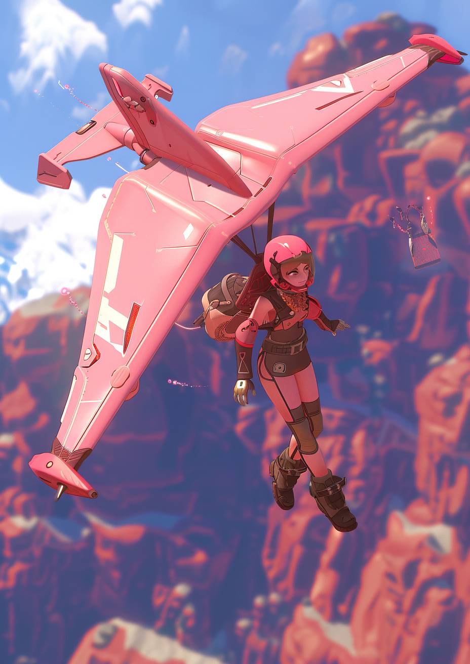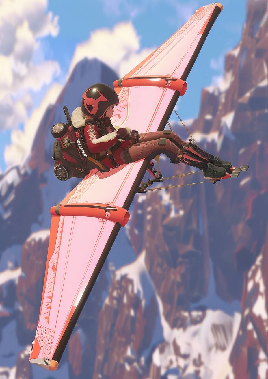 Yoko fliegt mit einem Segelflugzeug über die Berge.