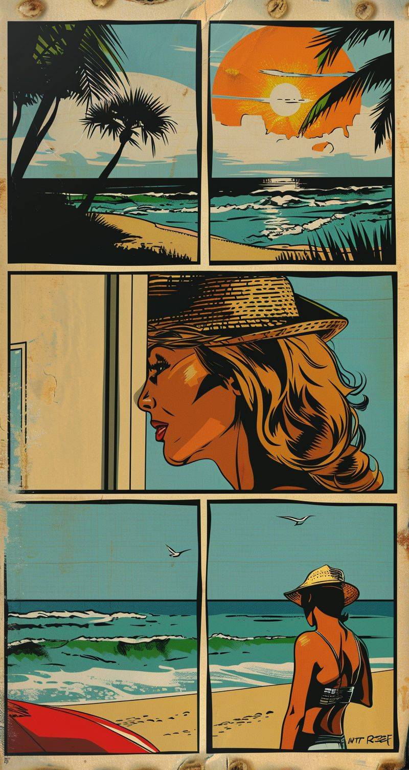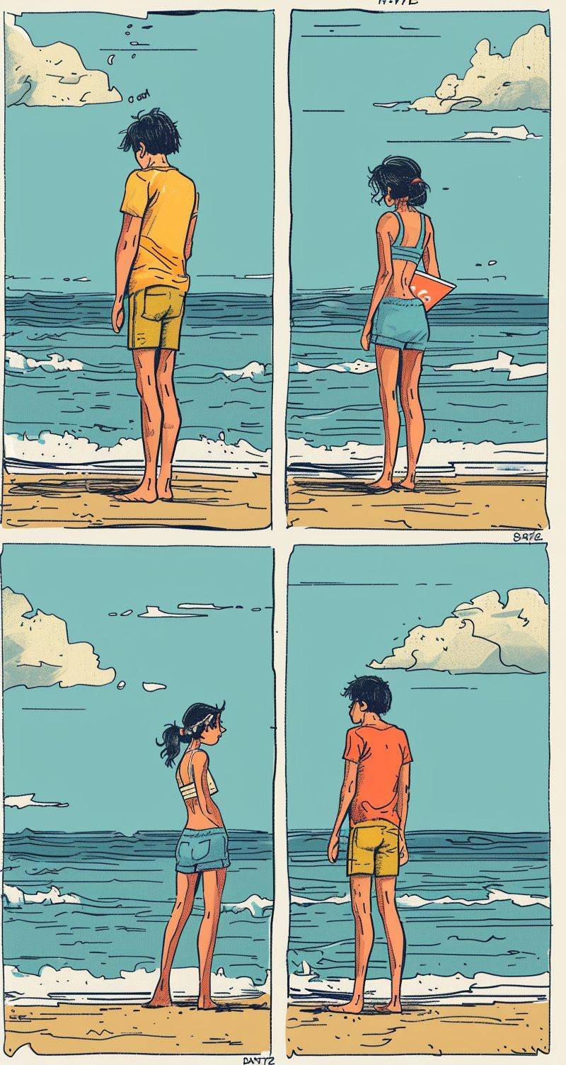 Vier-Panelf Comic über amerikanische Strandaktion, Mode, IP, flach, Cartoon, Strich