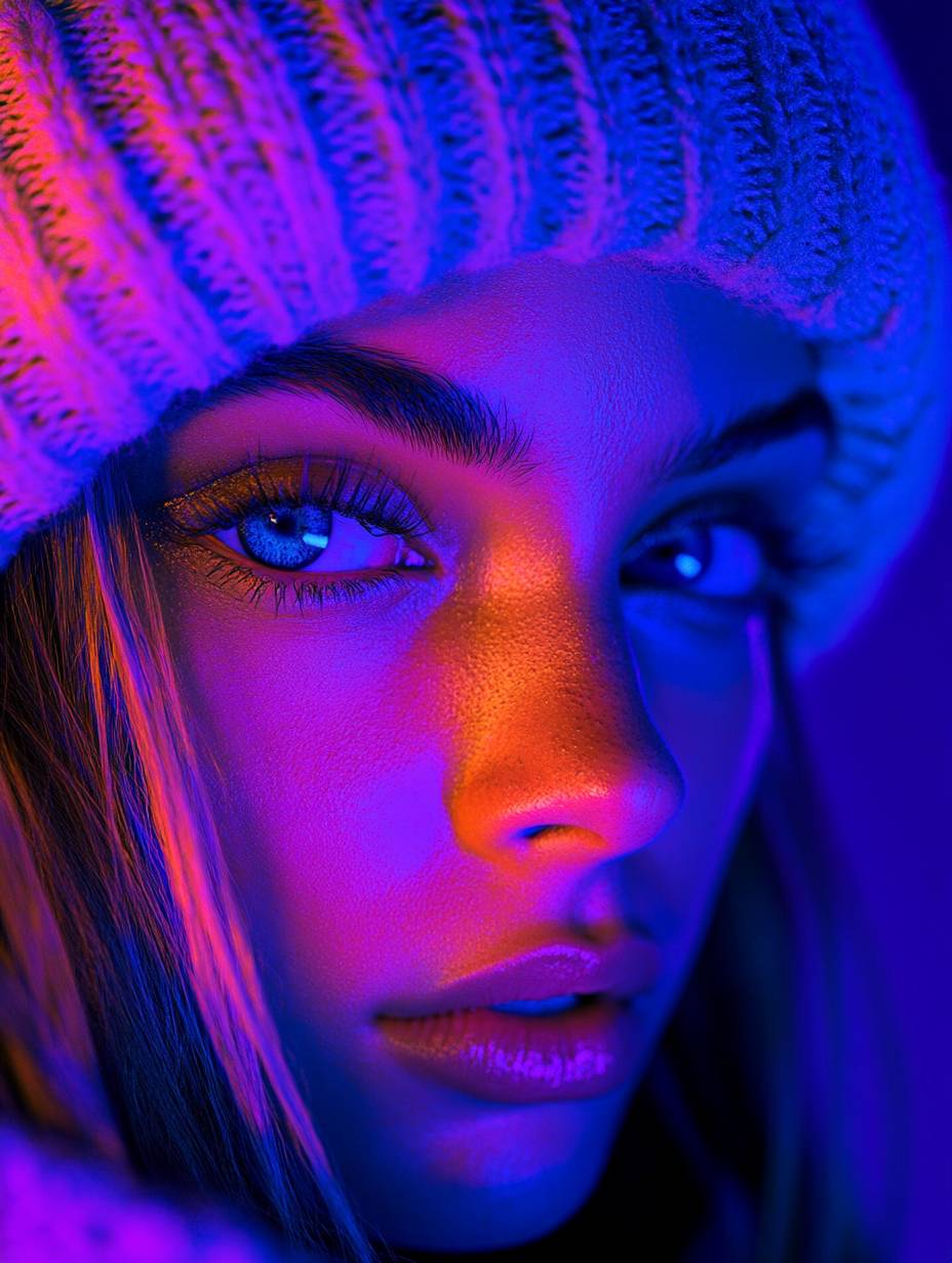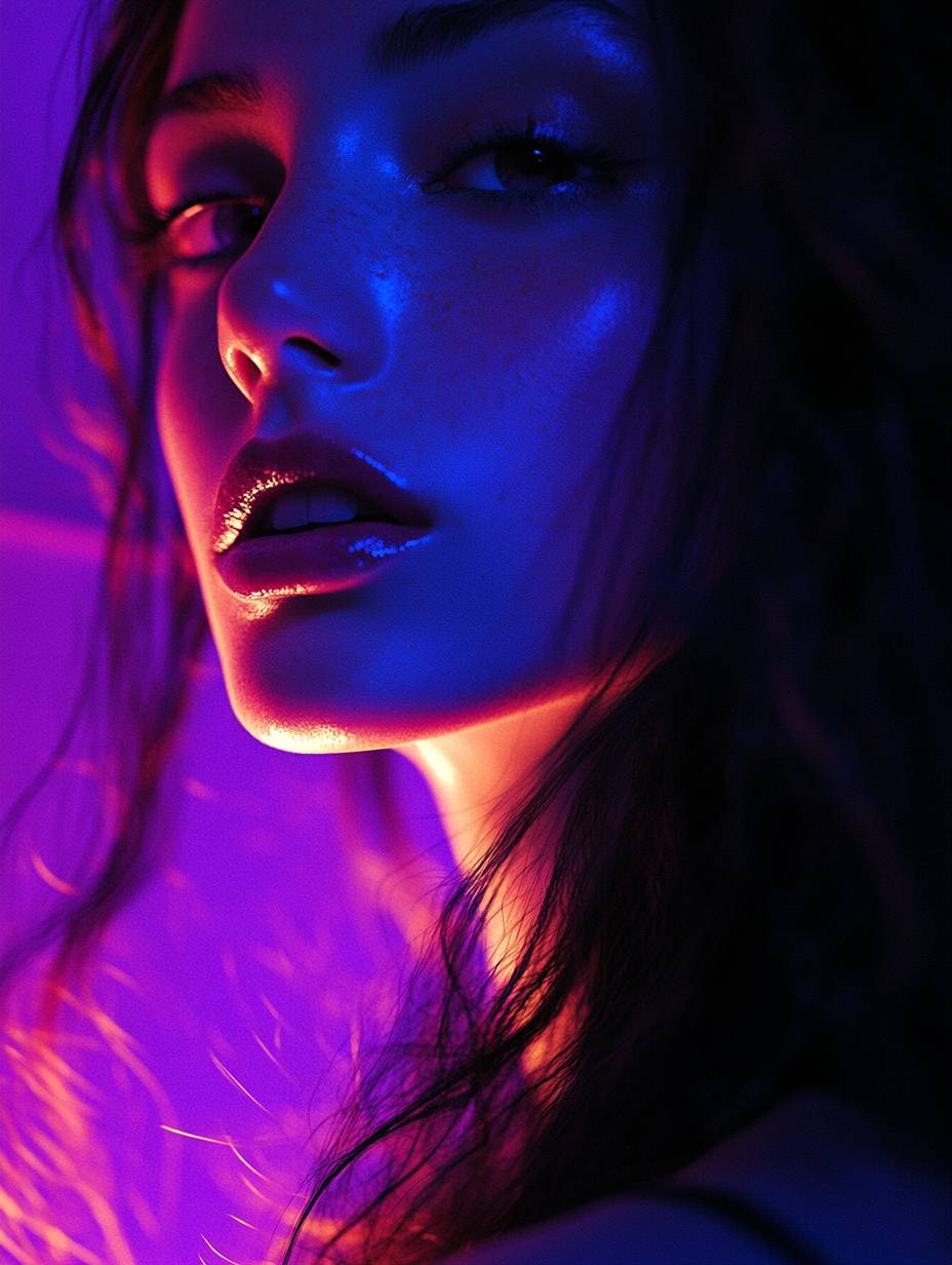 [SUBJECT] portrait, UV lighting, black light, glowing effects, ultraviolet, UV light, ultra-violet light, fluorescence, phosphorescence, glowing, radiant, luminous, glow --ar 3:4 --style raw --v 6.1
