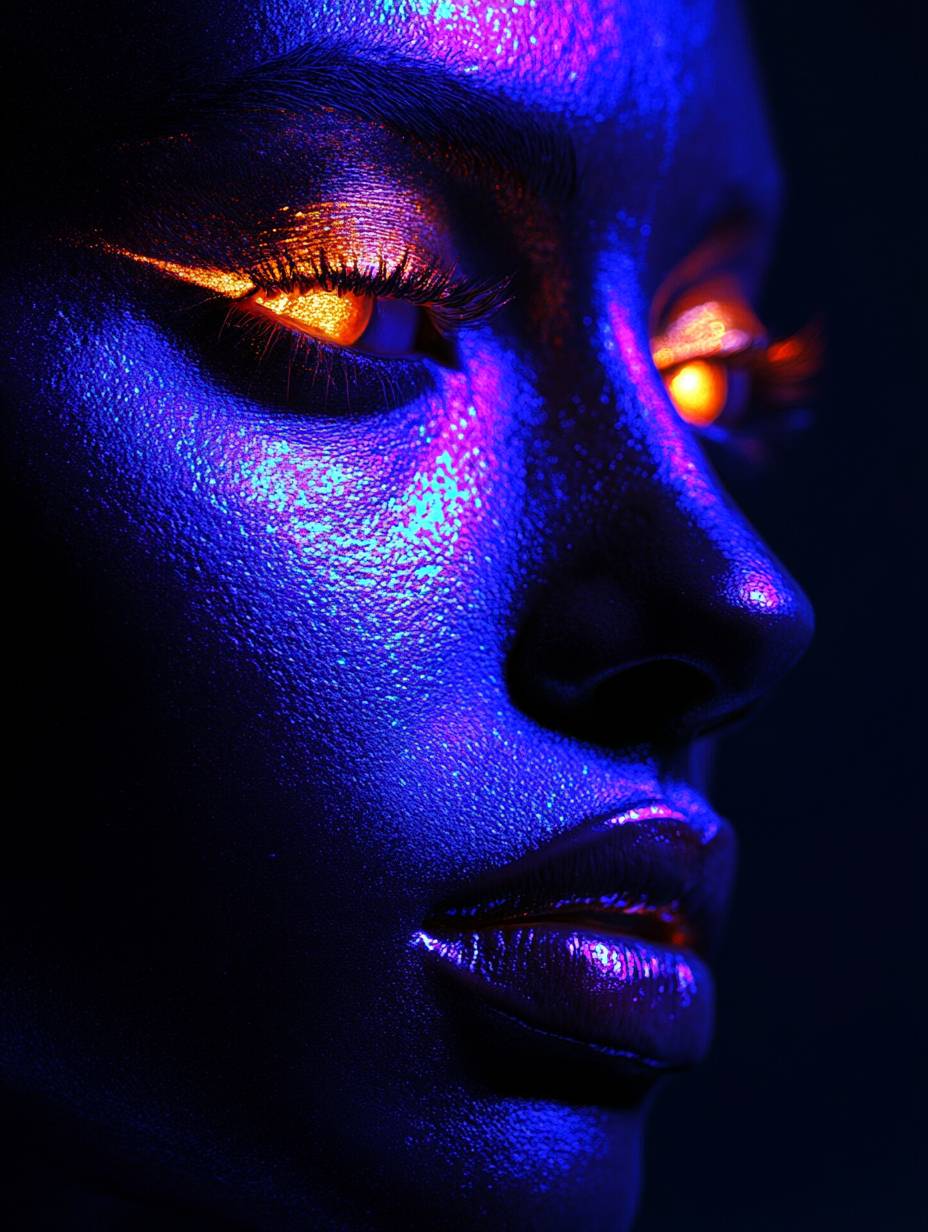 Porträt, UV-Beleuchtung, Schwarzlicht, leuchtende Effekte, ultraviolett, Fluoreszenz, Phosphoreszenz, leuchtend, strahlend, leuchtend