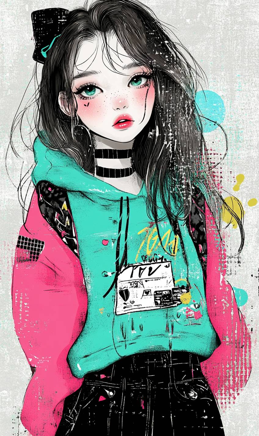 Süßes, hübsches und selbstbewusstes Anime-Mädchen