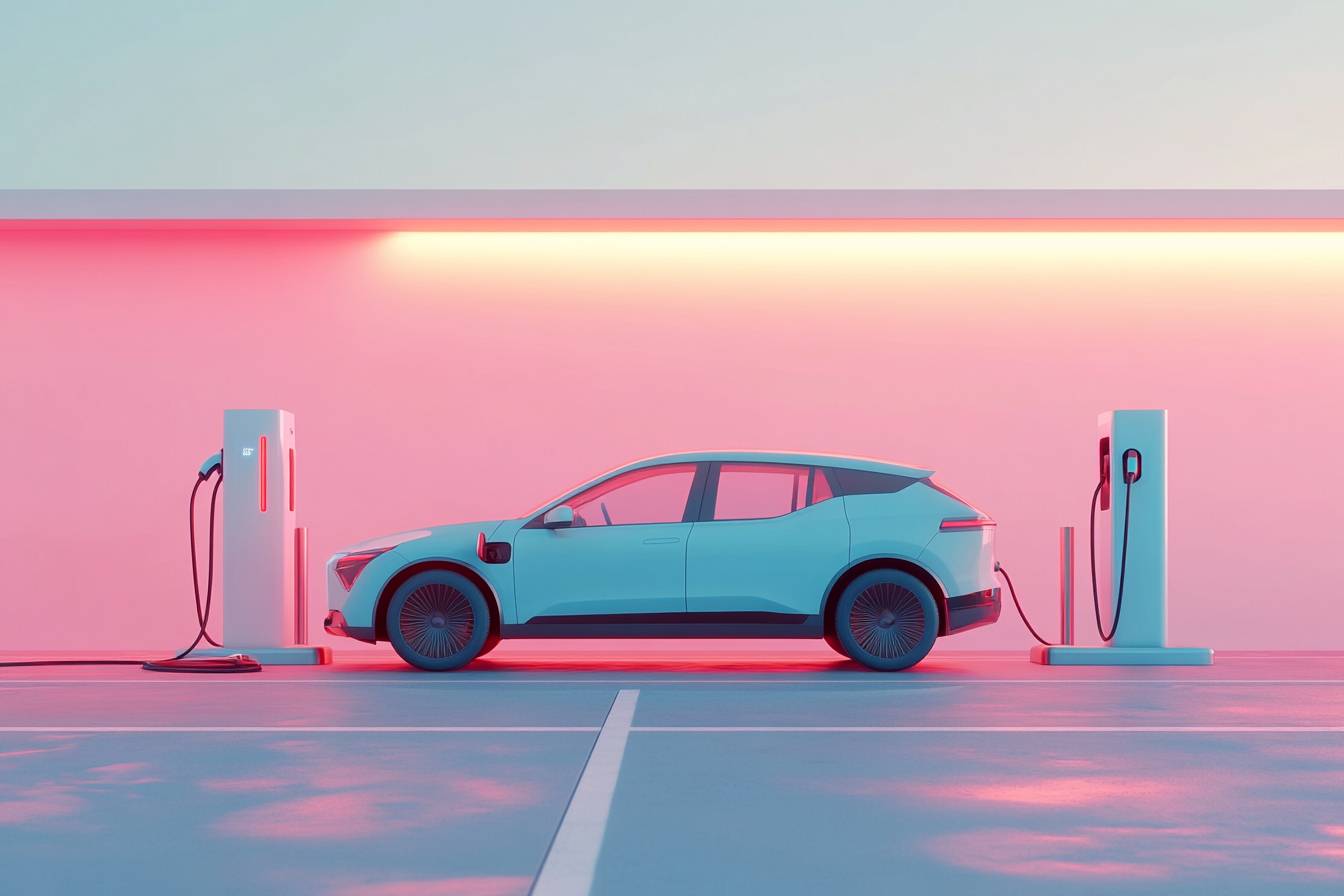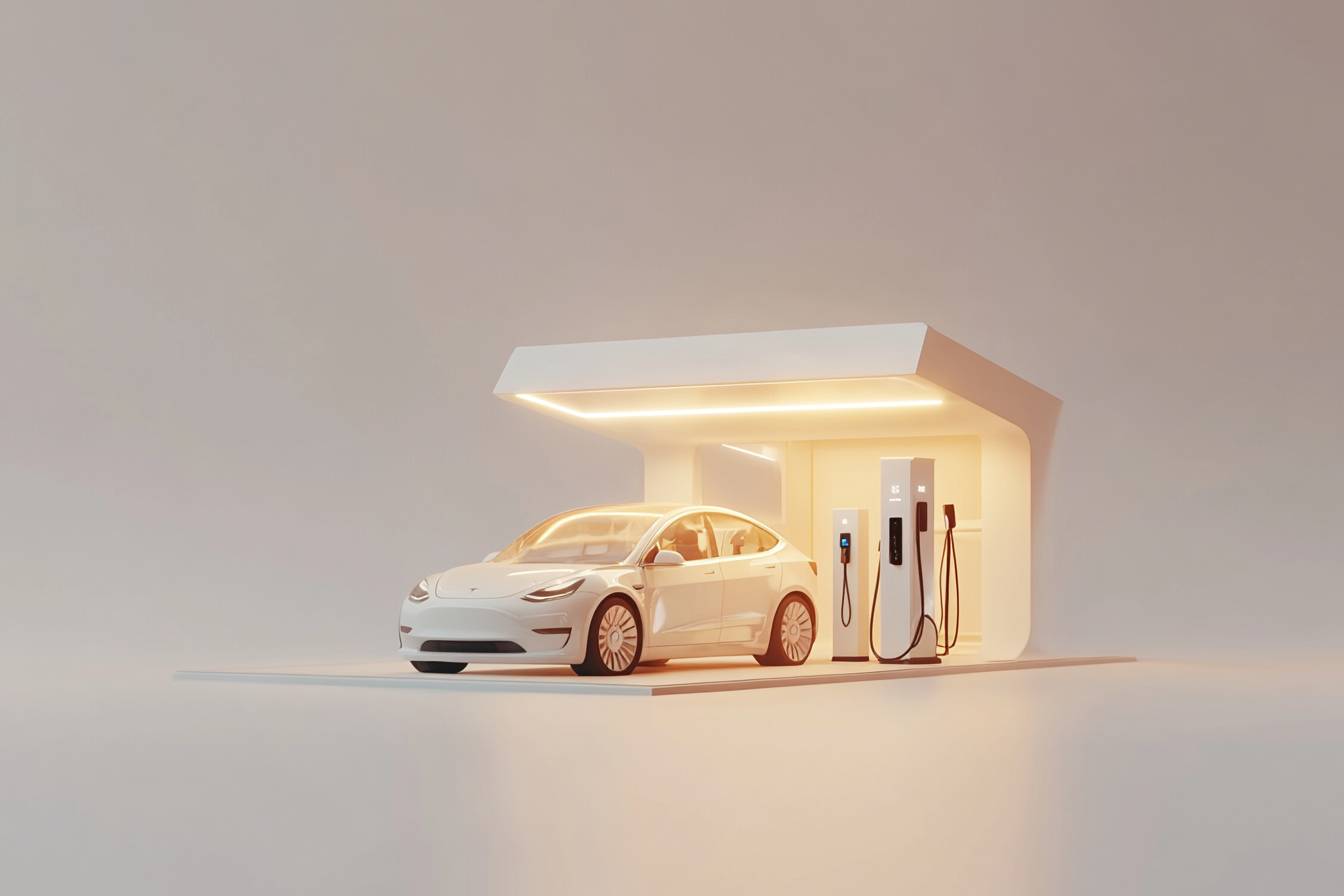 3D-Rendering-Stil für neue Energiefahrzeuge und Ladestationen