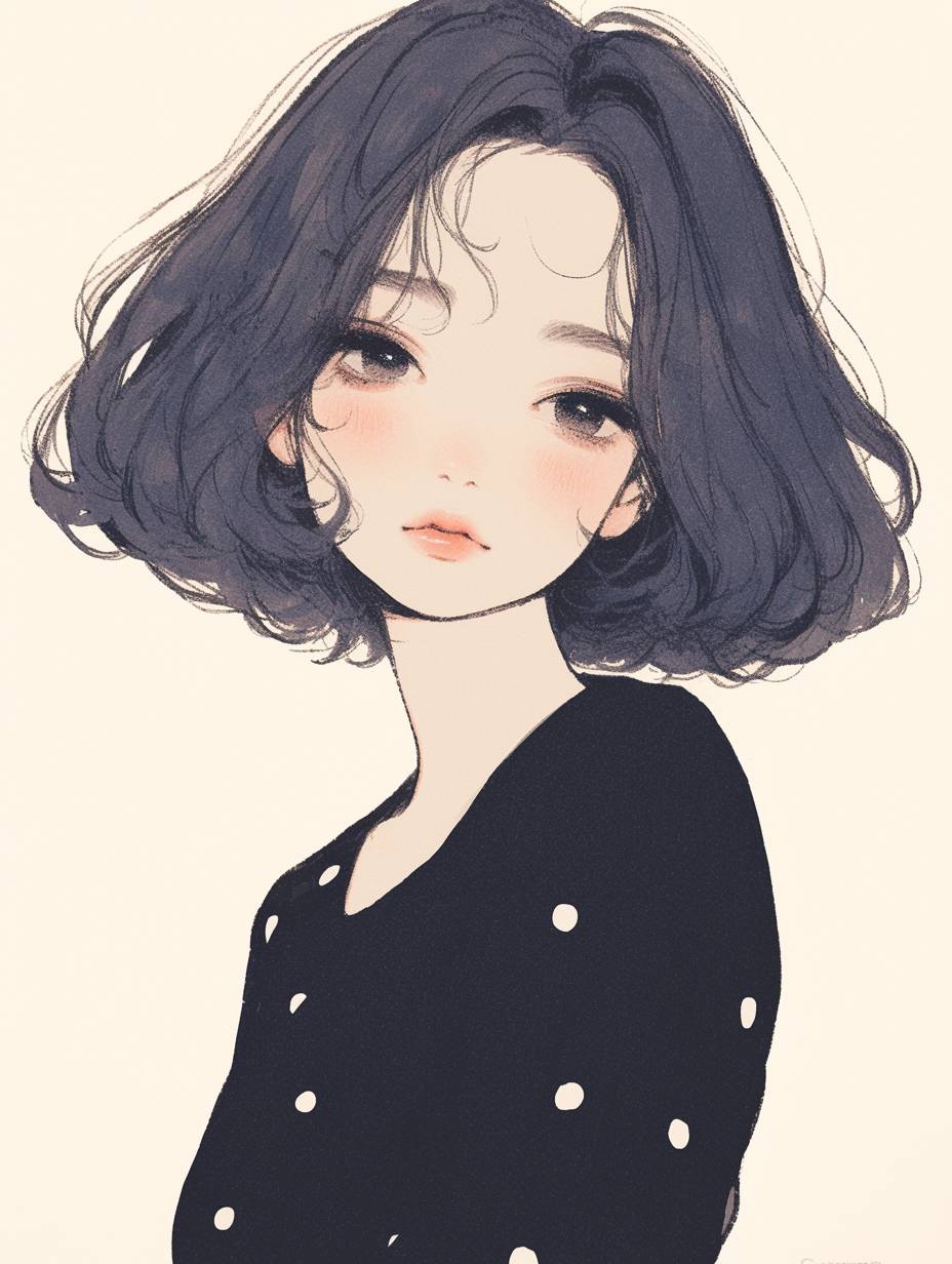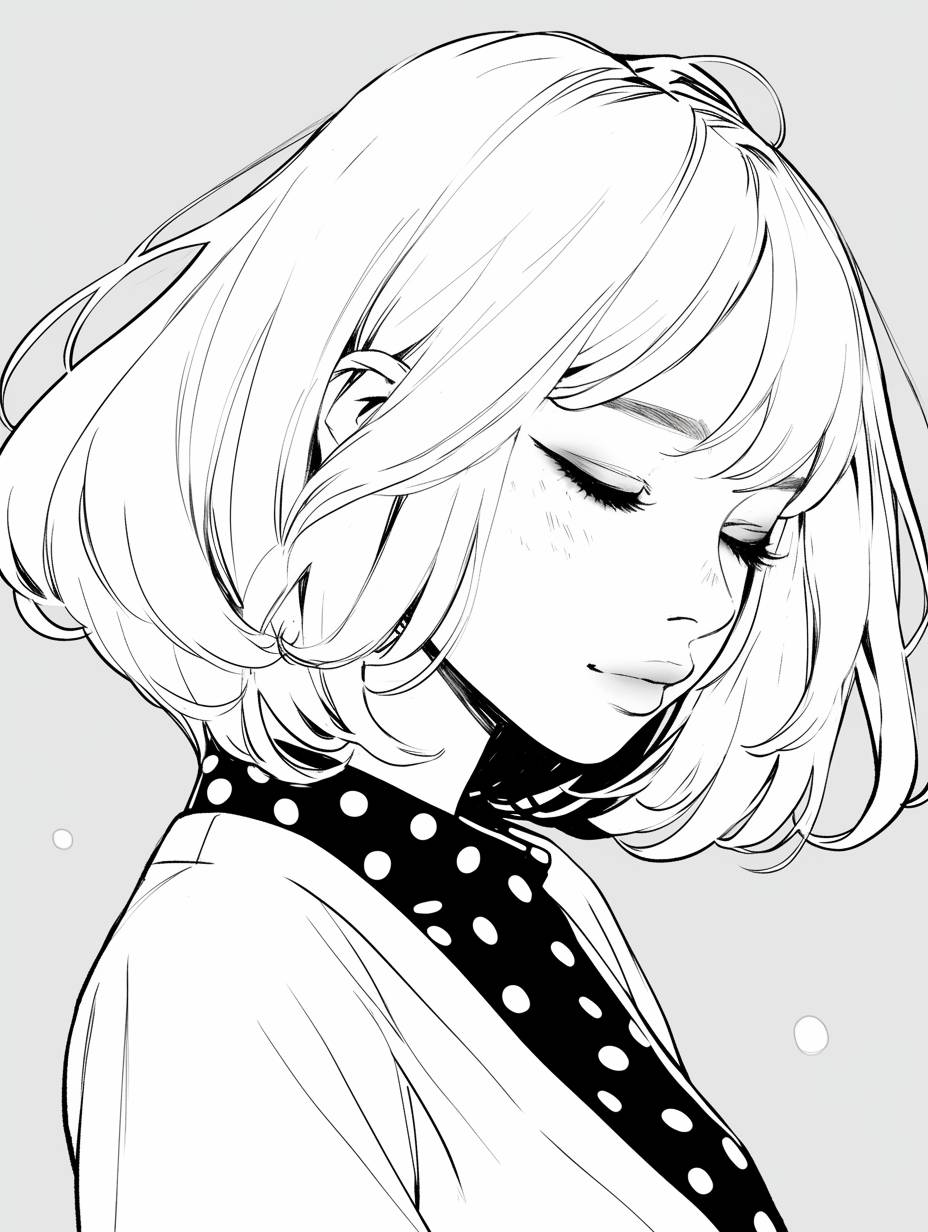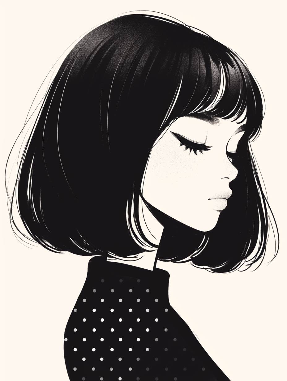 Einfach und niedlich: Linienkunst einer Frau mit kurzen Haaren und Punkten.