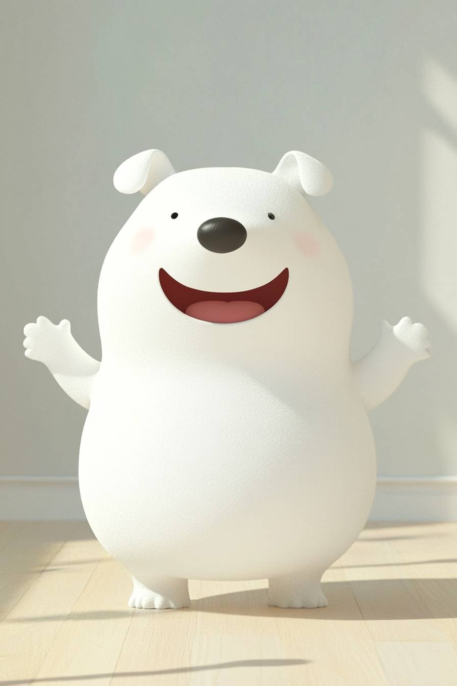 hubby cute fluffy the little white Bull Terrier's belly, funny facial expressions, exaggerated movements, 3D characters, white background, a bit fluffy, elongated shapes, cartoon style, minimali stshot on a Canon mirrorless camera, ultra detailed, 8k --sref 4007892812 --sw 100 --v 6.1 --stylize 200 --personalize ocyetej --ar 2:3
