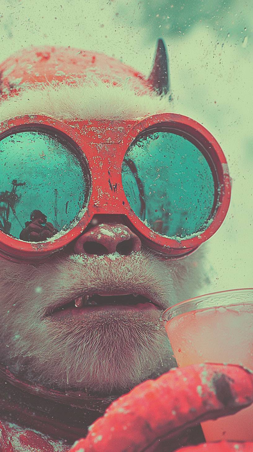 Un yeti con un casco con cuernos y grandes gafas de sol espejo está bailando disco.