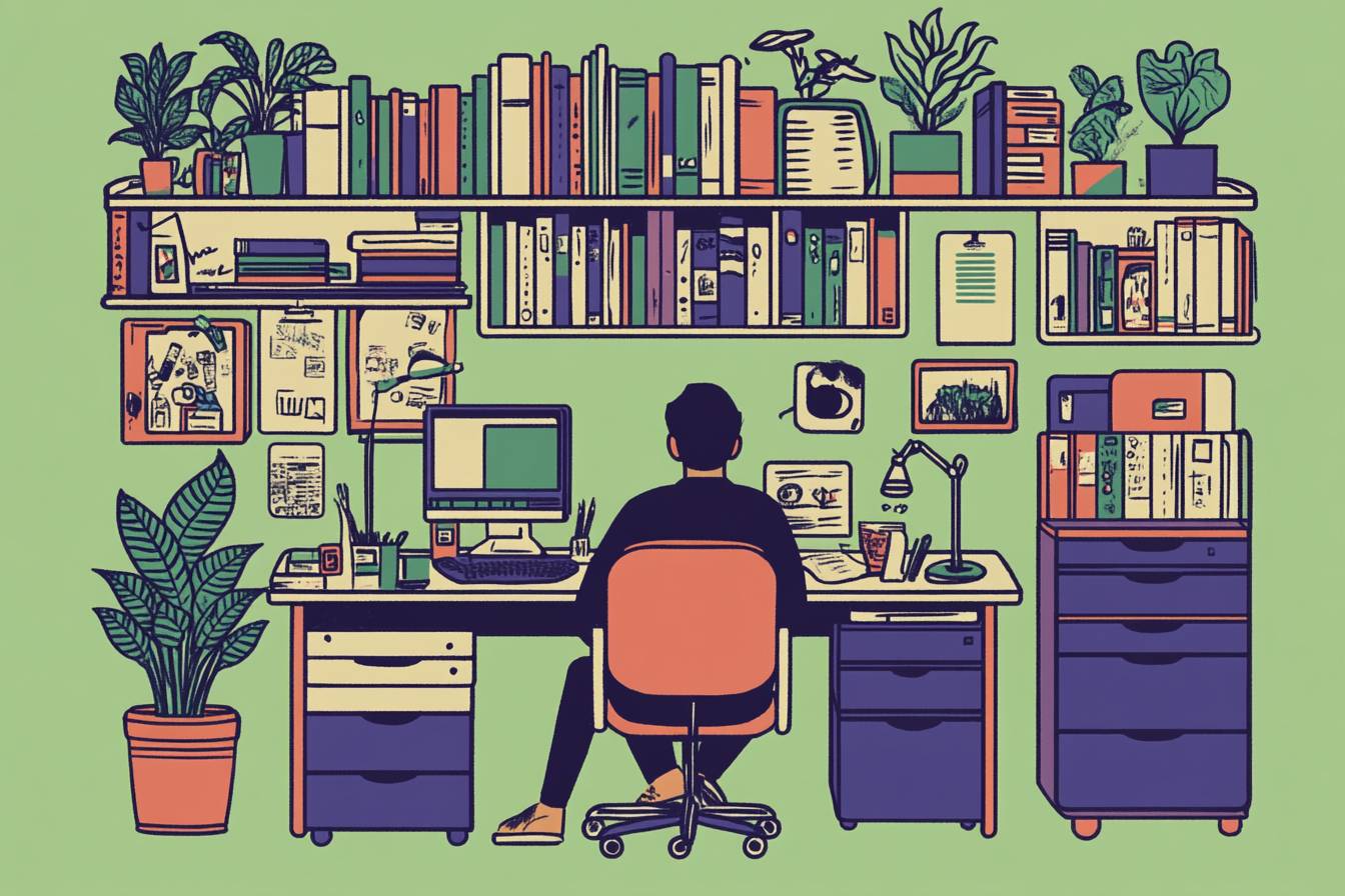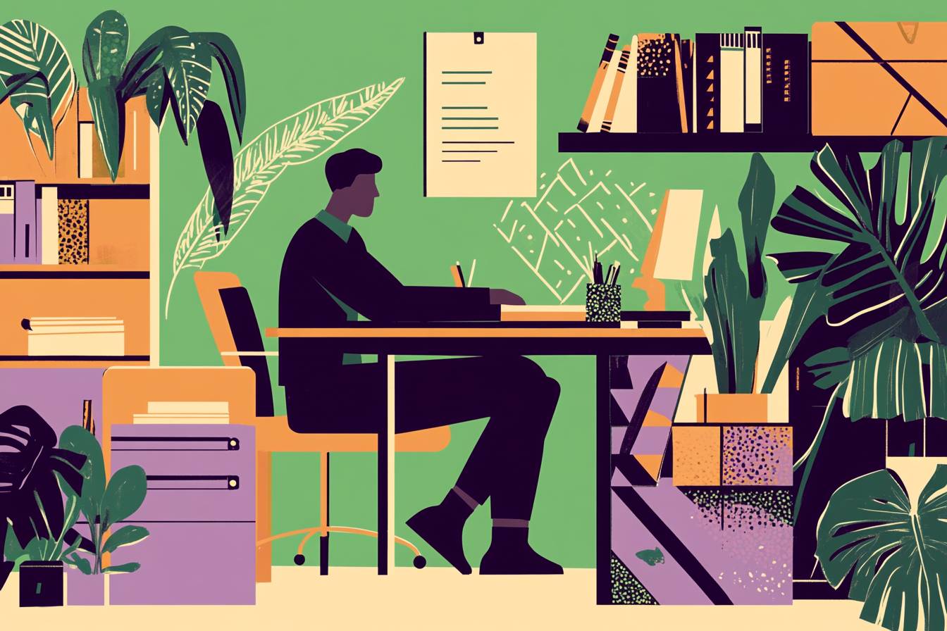 Una ilustración plana que muestra el entorno de un trabajador de oficina.