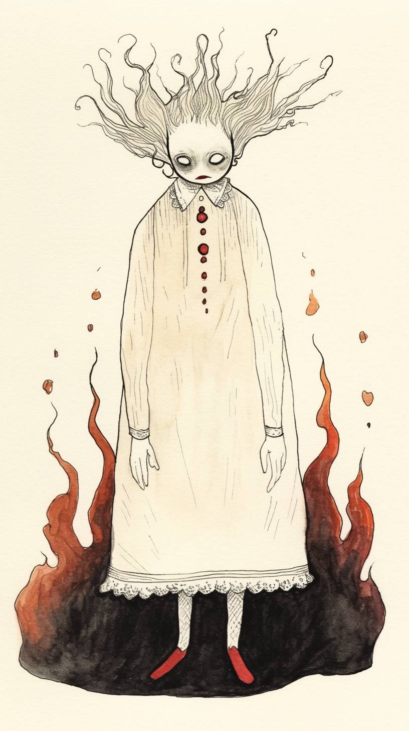 hand drawings of a disturbed person, thicks strokes of colours, deranged, mentally insane, spooky --ar 9:16 --style raw --sref 1870674091 --niji 6